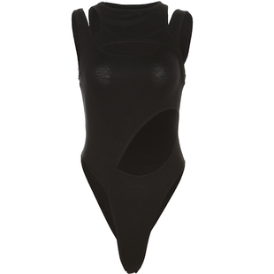怪诞女孩 显瘦上衣女 嘻哈街头风不规则镂空设计背心性感纯色修身
