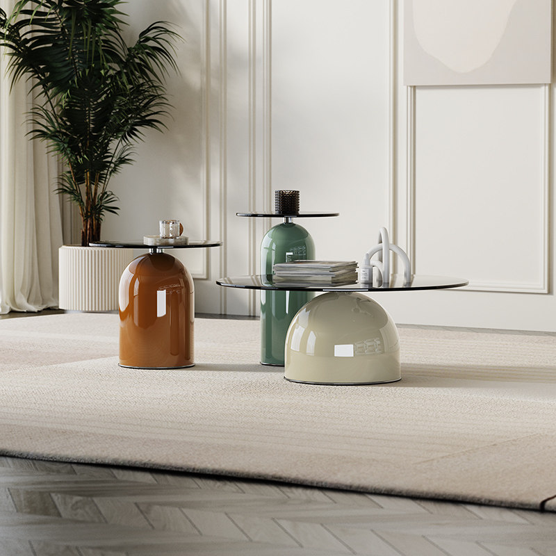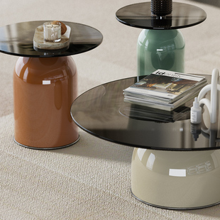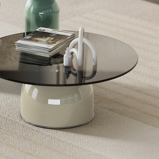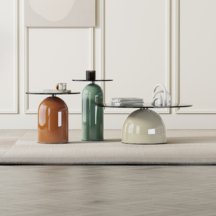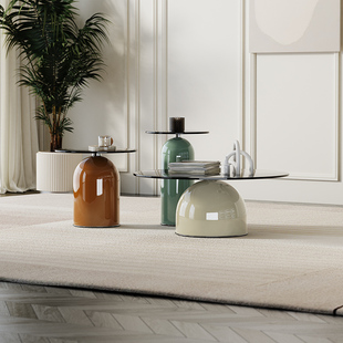 慕梵迪高端时尚 轻奢圆形玻璃茶几客厅家用设计师创意艺术组合茶几