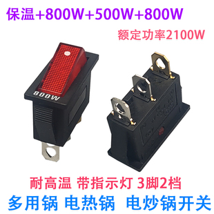 电锅开关500W800W2100W多功能电热锅炒锅多用锅配件 船型带灯按钮