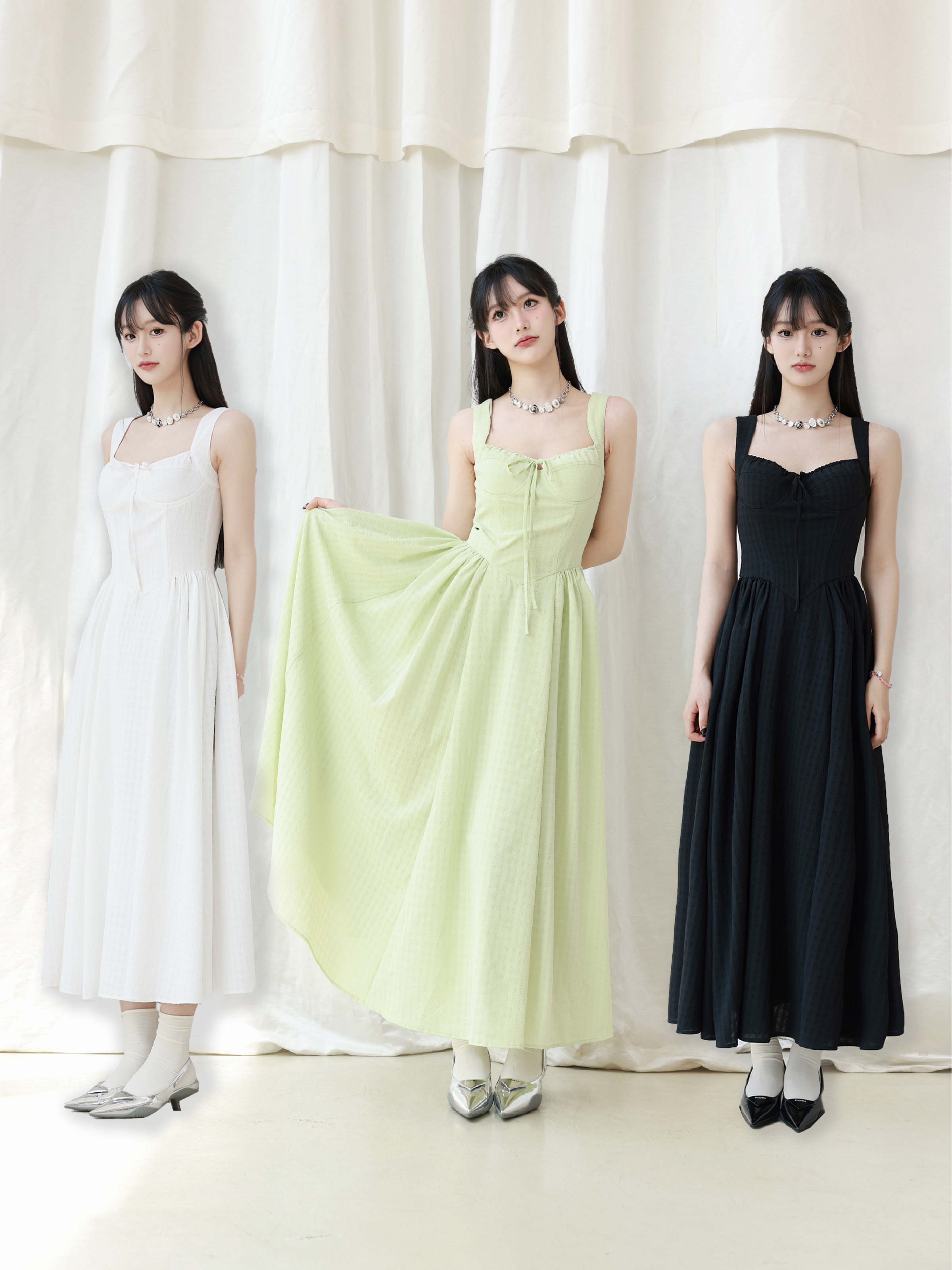 法式 易碎商店 纯欲薄荷曼波吊带裙收腰度假小绿裙 杨紫同款