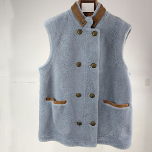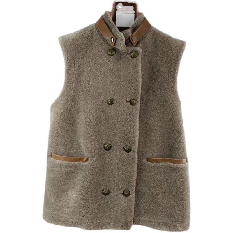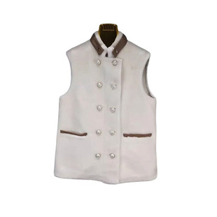 FIRSTFLOOR 两穿可拆卸复古拼接绒感毛织翻领环保皮草短外套马甲
