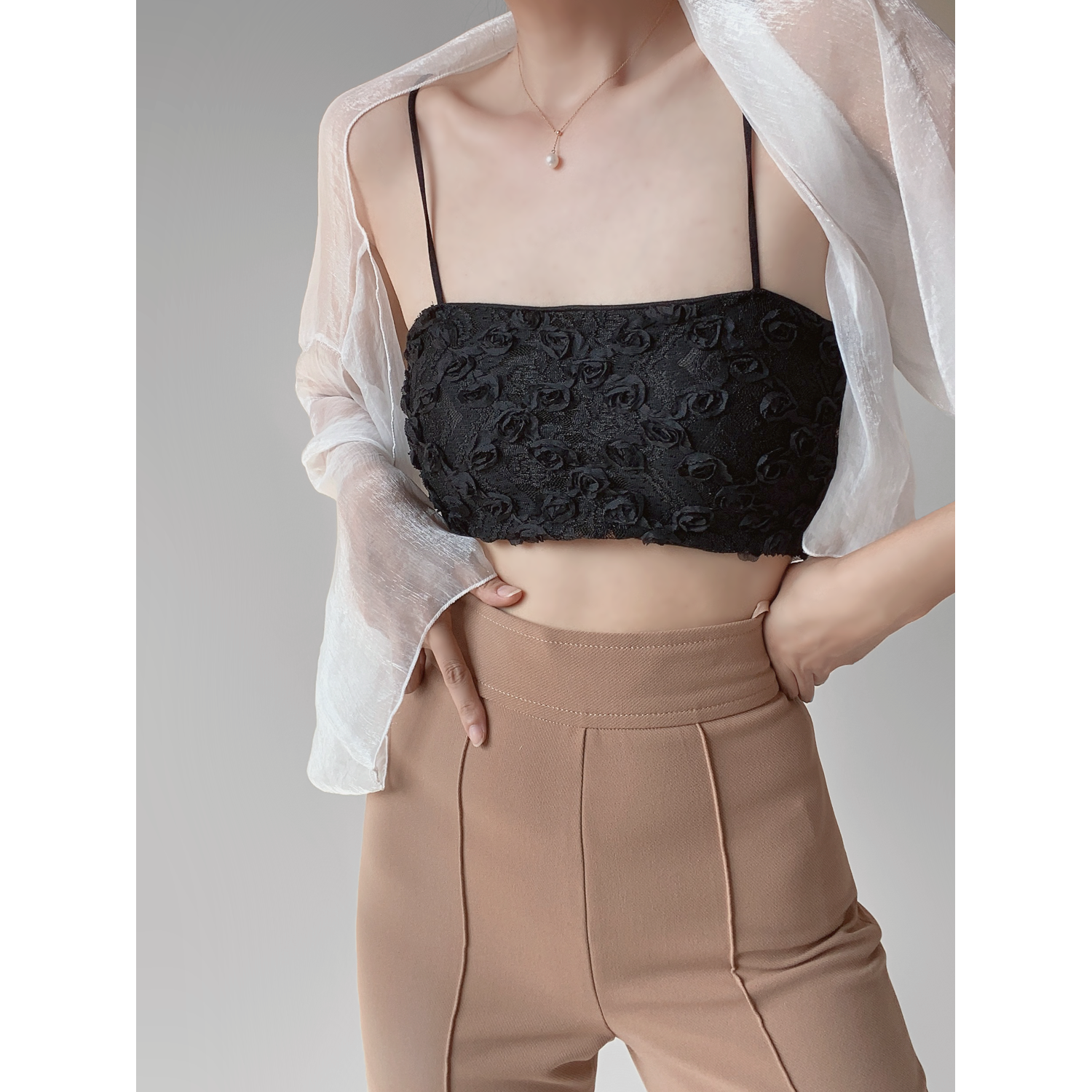 立体玫瑰花朵内搭小吊带上衣三色 唯美法式 带胸垫 特 福利款