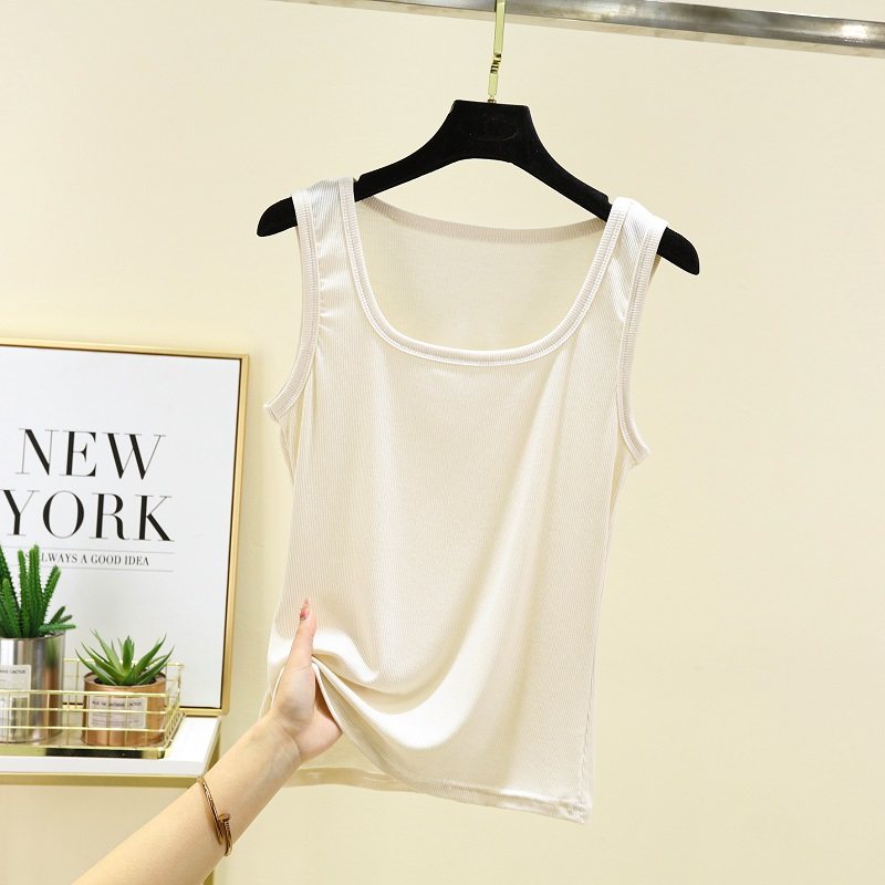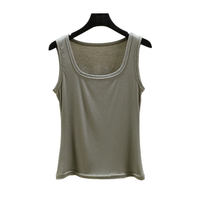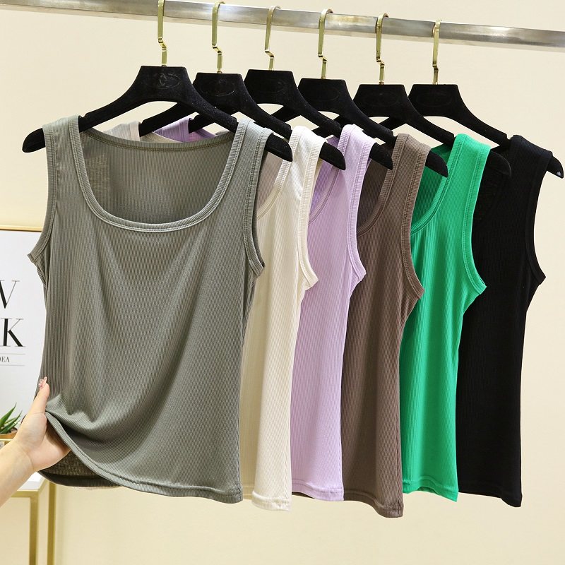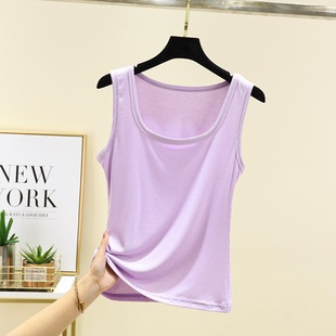 吊带衫 修身 宽肩上衣 内搭遮副乳螺纹棉莫代尔背心女夏薄款 方领无袖