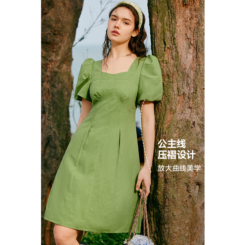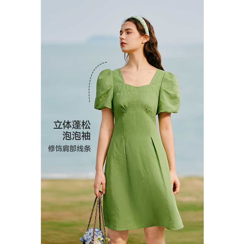 诗凡黎天丝亚麻凉感透气连衣裙薄荷曼波裙子女伊芙丽outlets店