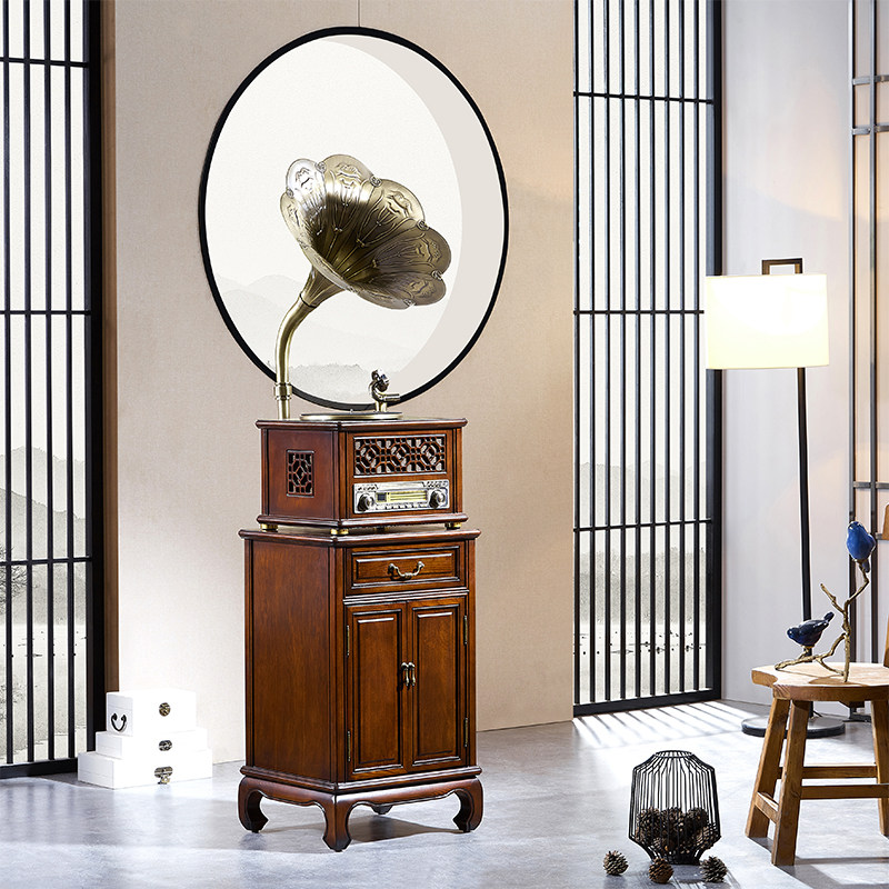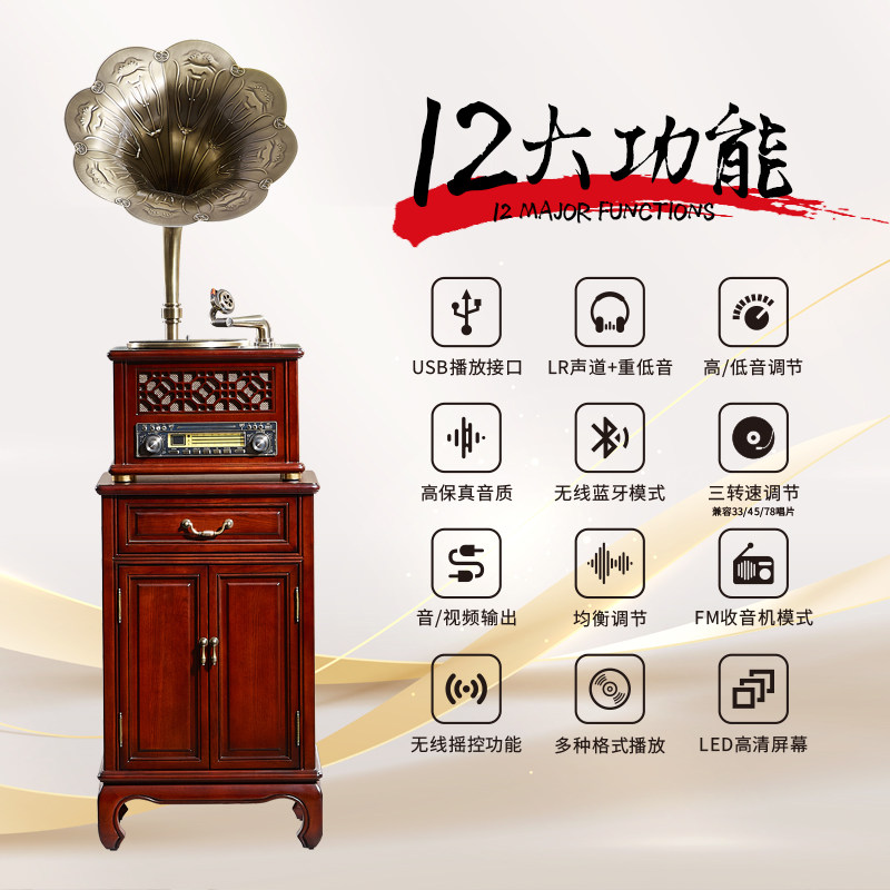 客厅电唱机仿古大喇叭音响 黑胶造型留声机片机中美式 复古老式 台式