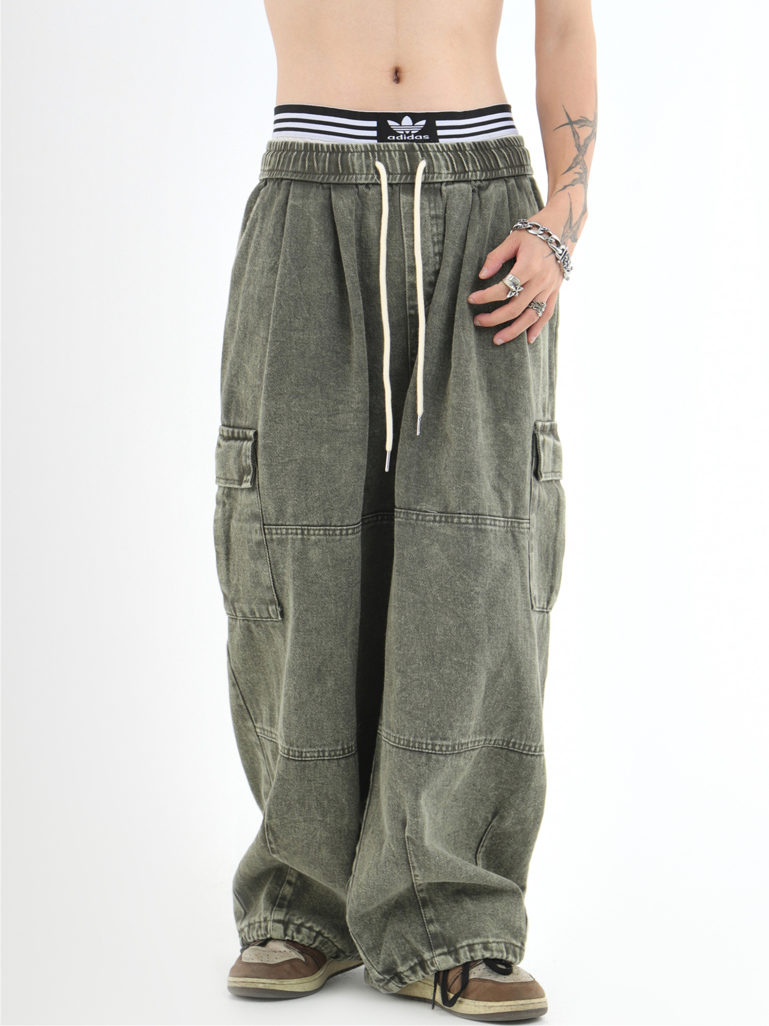 休闲牛仔长裤 NOPASS 裤 复古褪色做旧水洗工装 国潮牌情侣自制美式