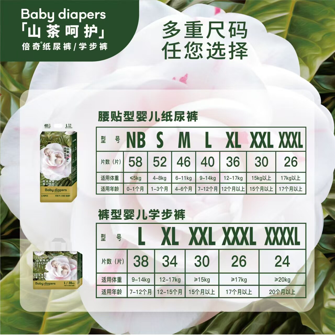 宝宝尿不湿男女通用 超薄透气拉拉裤 山茶花花苞裤 倍奇婴儿纸尿裤