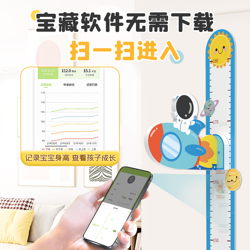 儿童身高墙贴卡通宝宝量身高贴墙纸不伤墙可移除磁吸测量尺仪升高