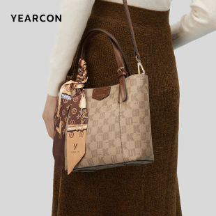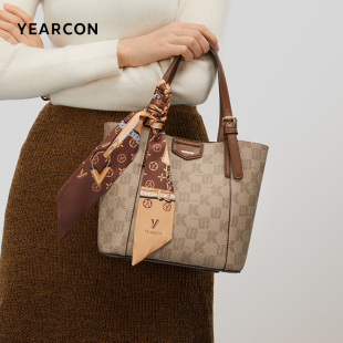 意尔康菜篮子包老花手提妈妈包新款 百搭通勤托特包斜挎包女包