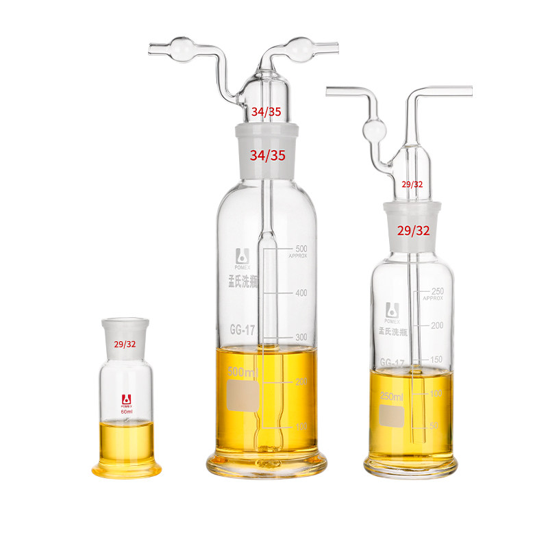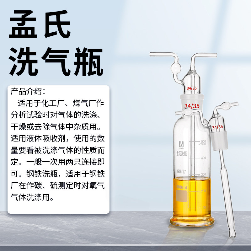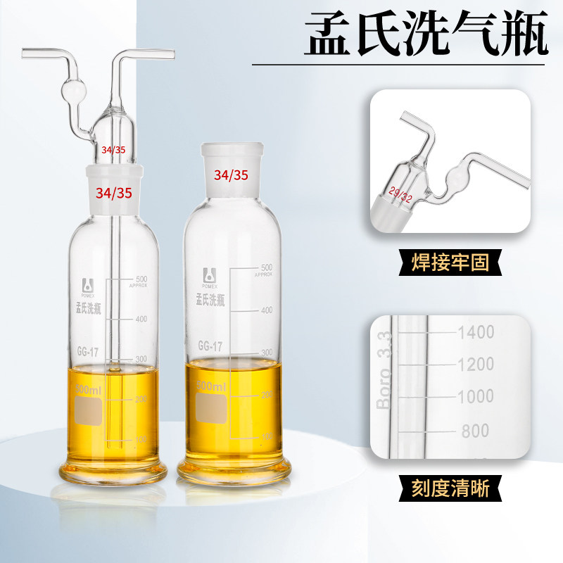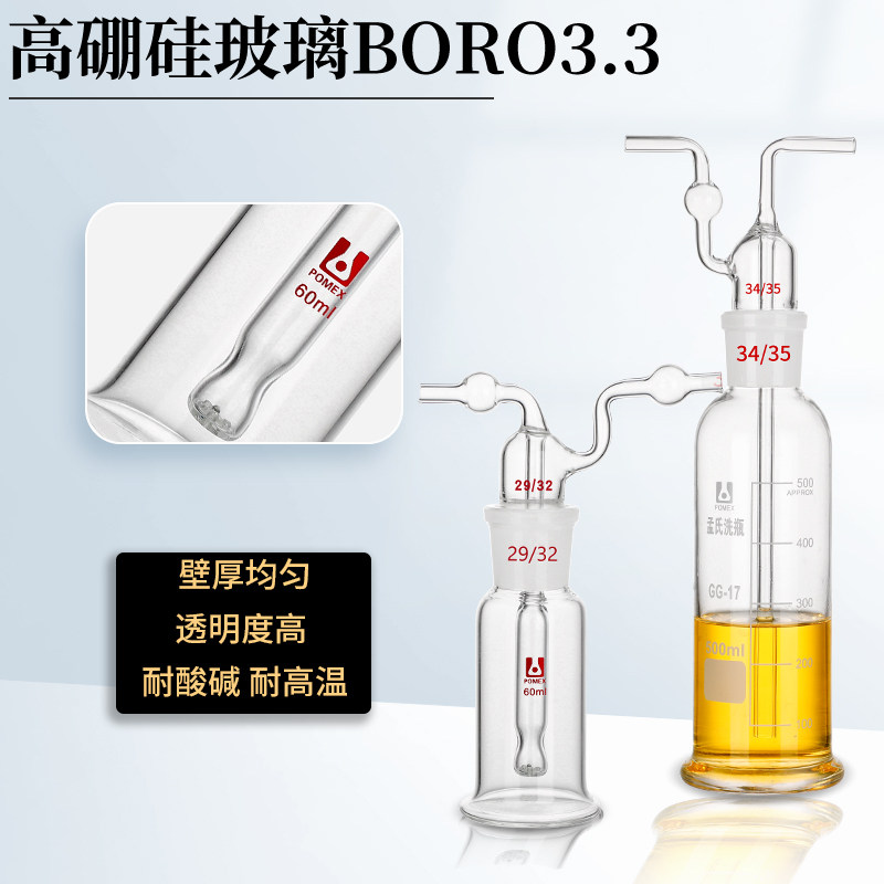 洗气瓶实验室加厚直管多孔气体洗瓶练声吹瓶器60 孟氏洗瓶高硼硅玻璃孟式 125 250 1000ml 500 博主同款