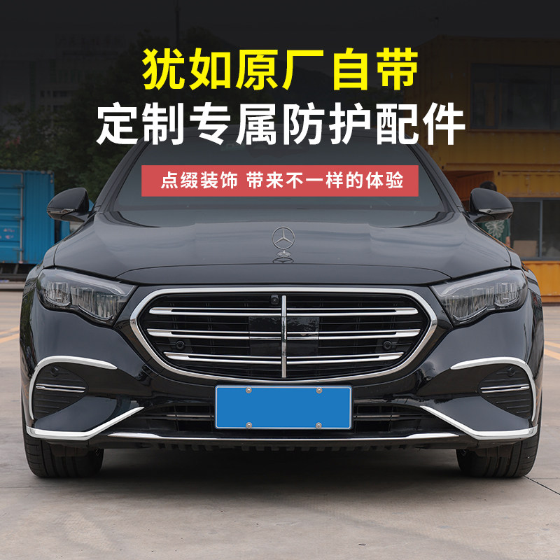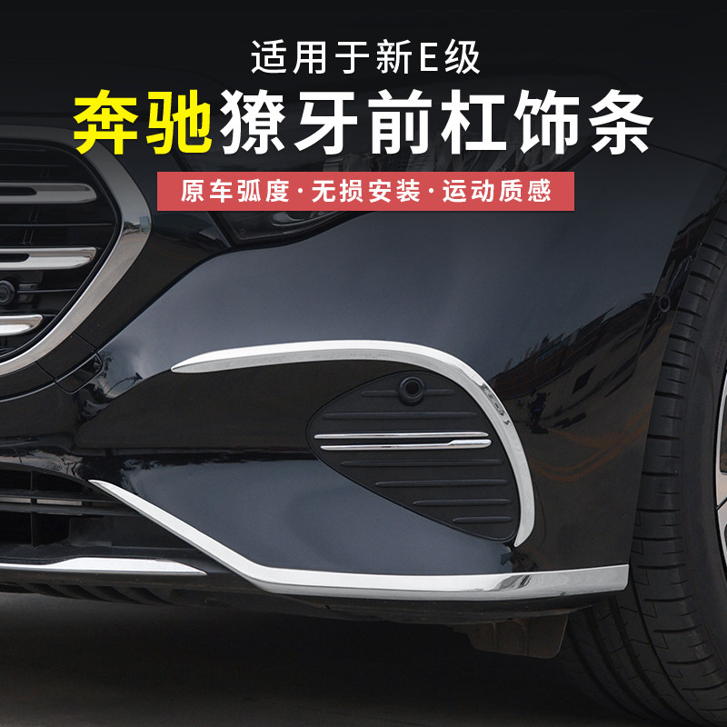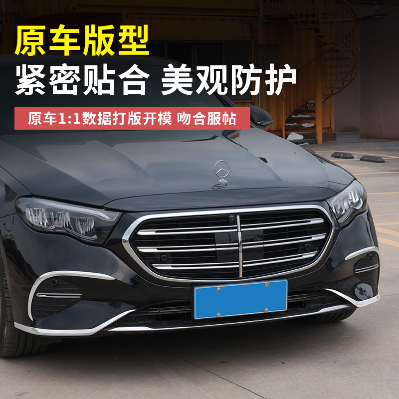 奔驰新E级E300L 饰配件 E260L獠牙前杠饰条车身亮条前脸防撞条改装