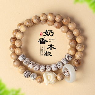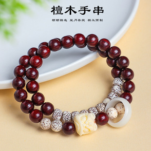 天然绿檀木串珠双圈手链男女中国风文艺复古星月菩提醒狮文玩