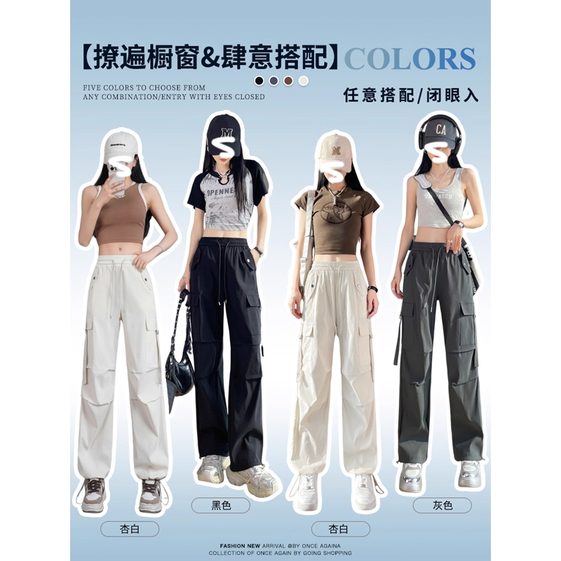 裤 伞兵休闲运动裤 女夏季 小个子束脚美式 薄款 清仓捡漏杏色速干工装