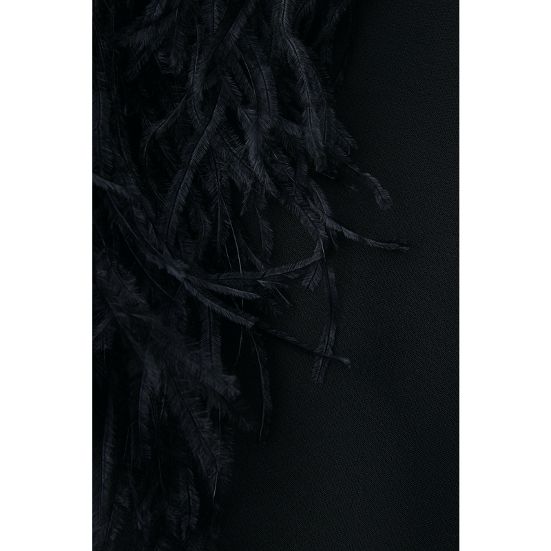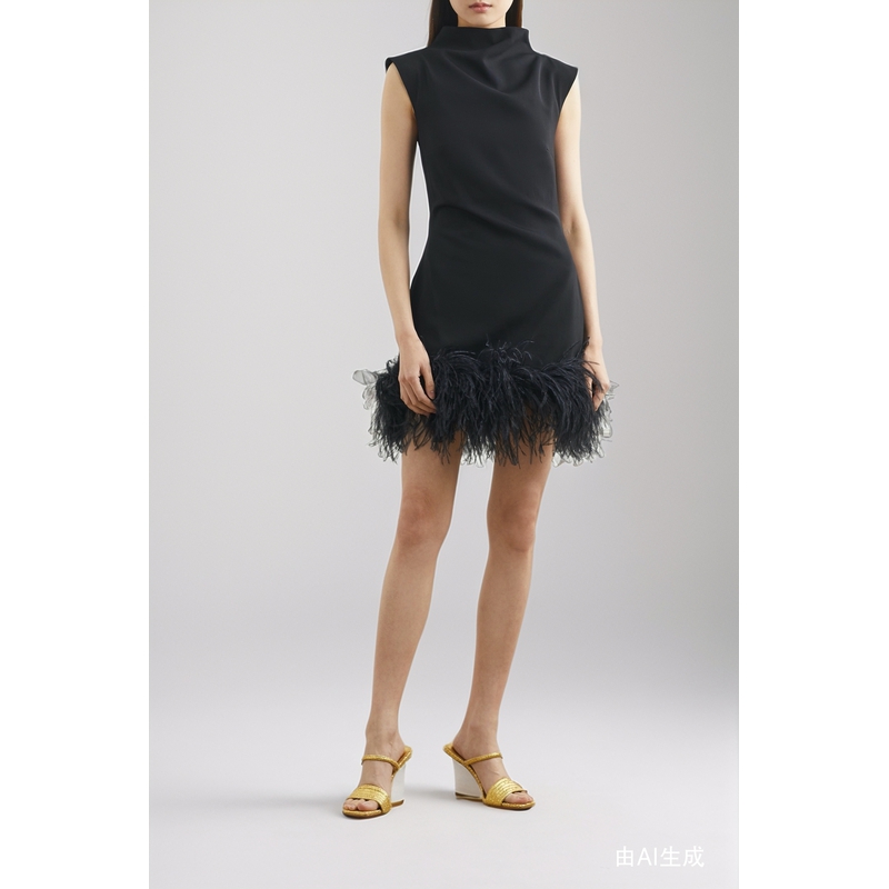 女羽毛边饰绉纱连衣裙小黑裙 16ARLINGTON 折扣