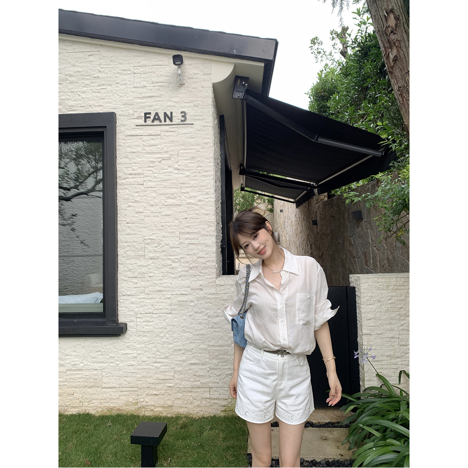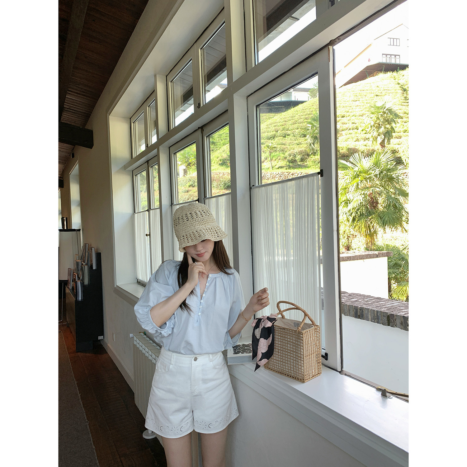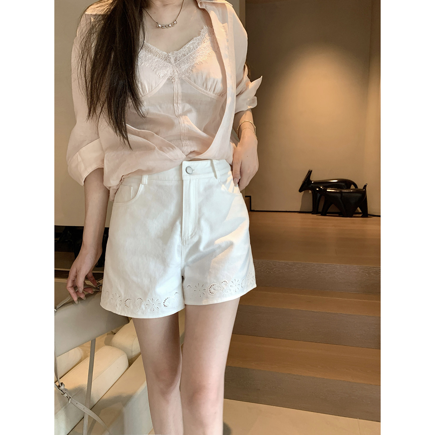 女新品 现货AHY 莱赛尔麻混纺斜纹激光绣花精致简约老钱休闲短裤