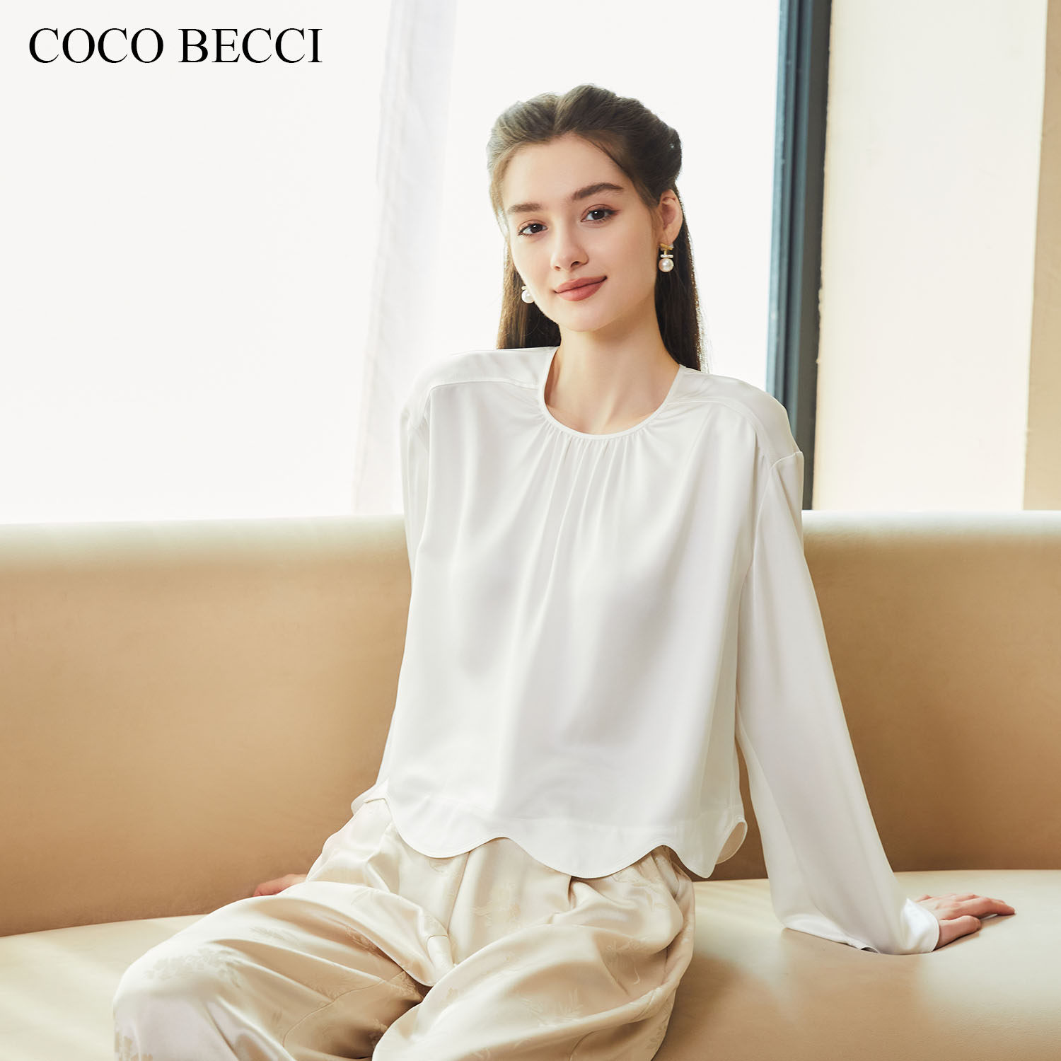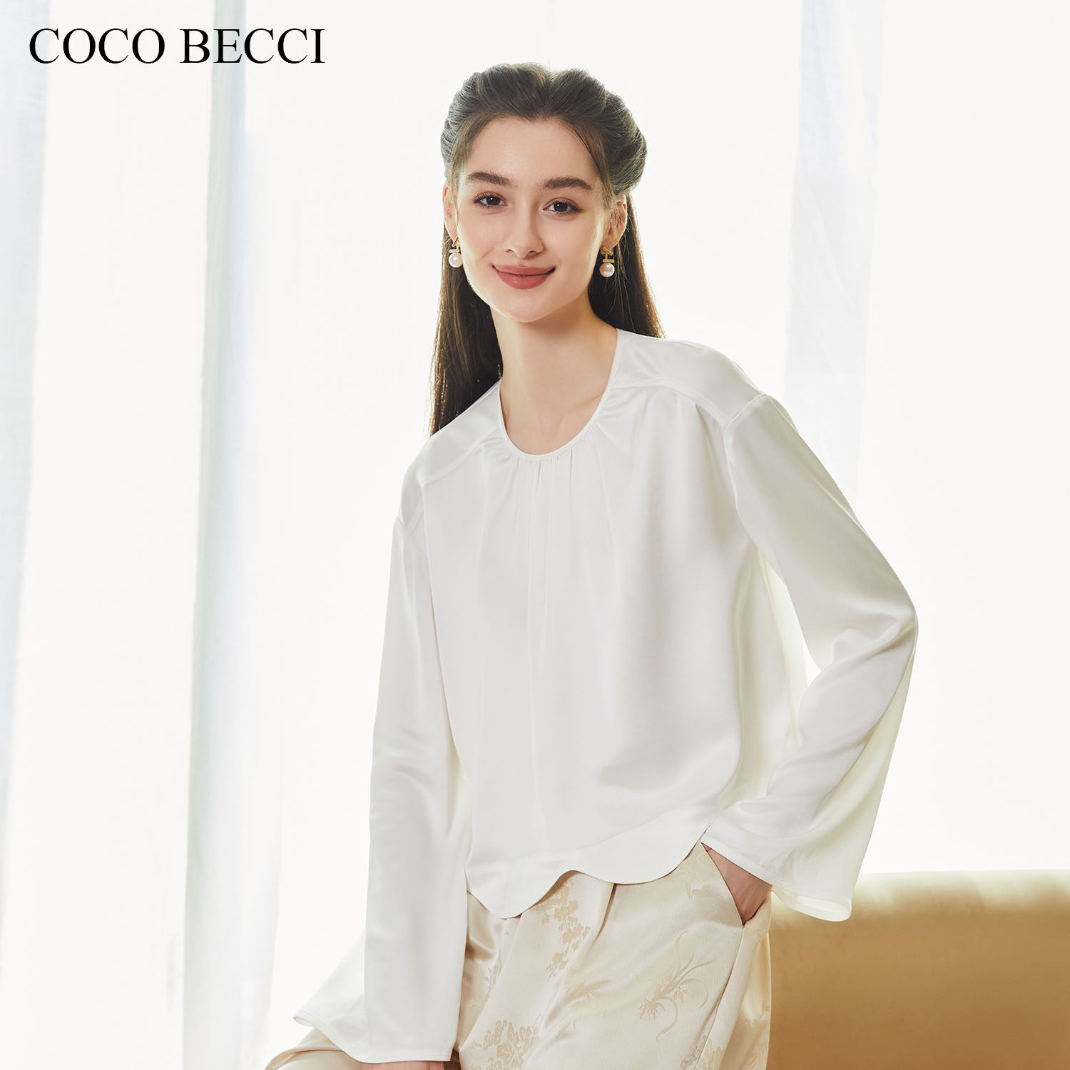纯色醋酸衬衫 COCO 法式 月华 YT24YA230006 BECCI