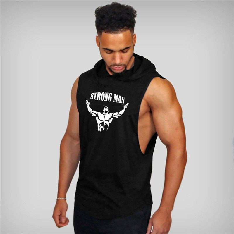 深挖健美健身连帽坎肩背心训练挖深工字背心运动背男棉 夏季 包邮
