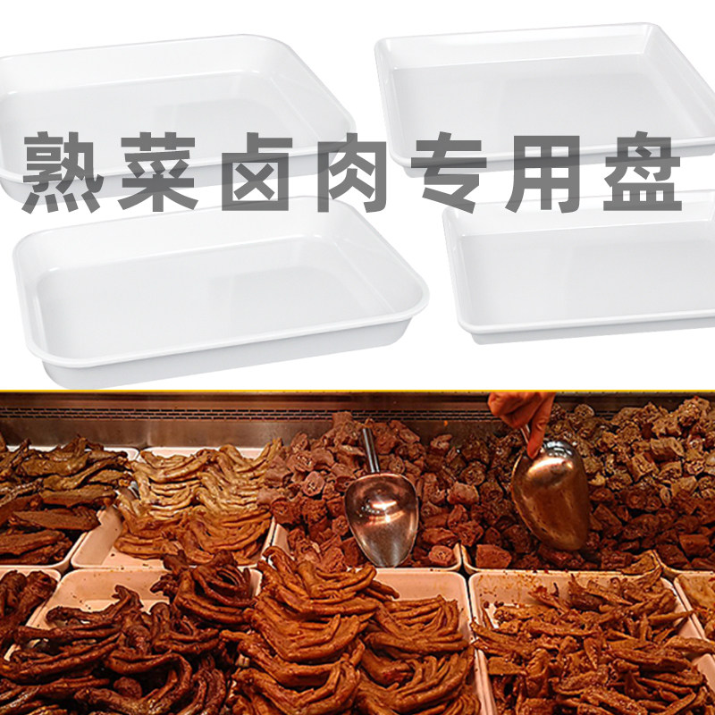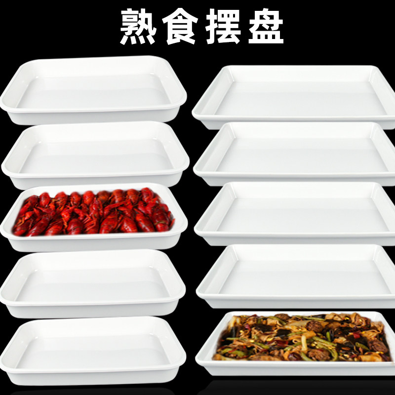 耐高温卤菜鸭货展示盘子生鲜熟食托盘直边长方形密胺仿瓷火锅菜盘