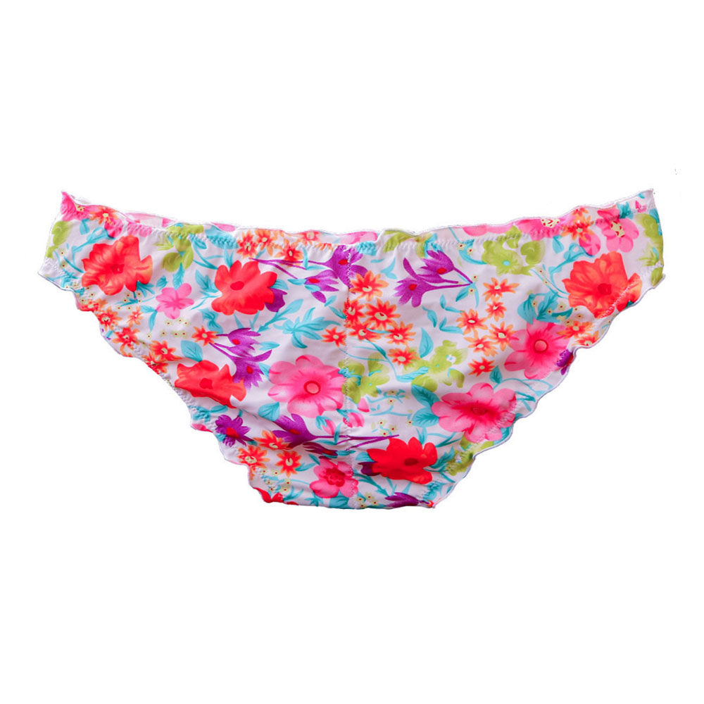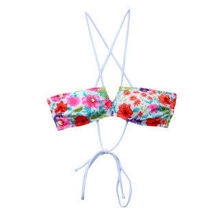 新款 带胸垫超级性感聚拢大胸弹性泳衣海边 红花印花抹胸比基尼泳装