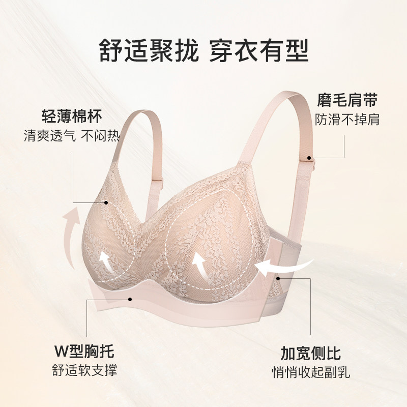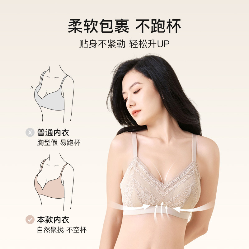古今内衣女透气聚拢无钢圈网纱全包裹上托防外扩文胸罩舒适透气