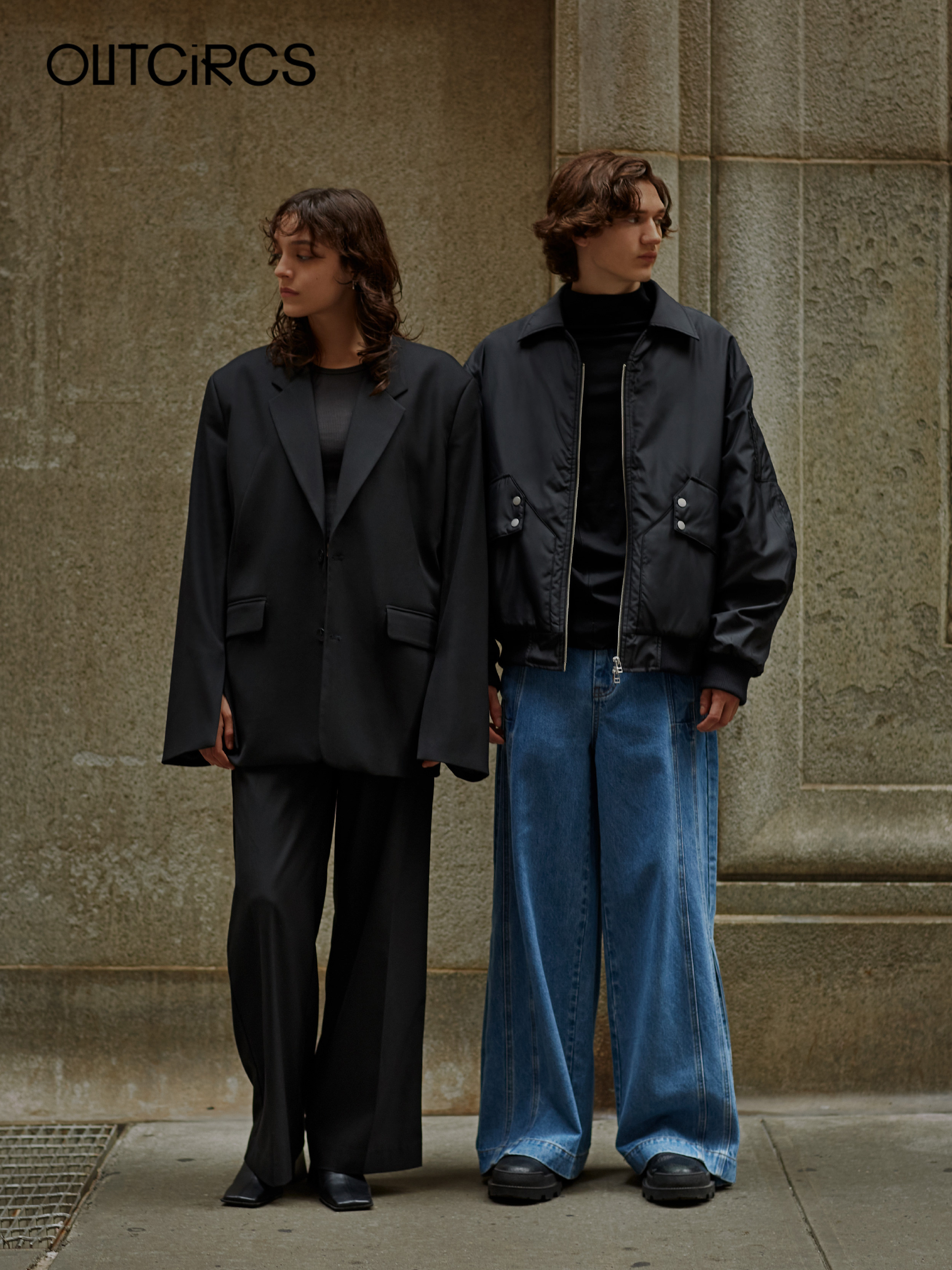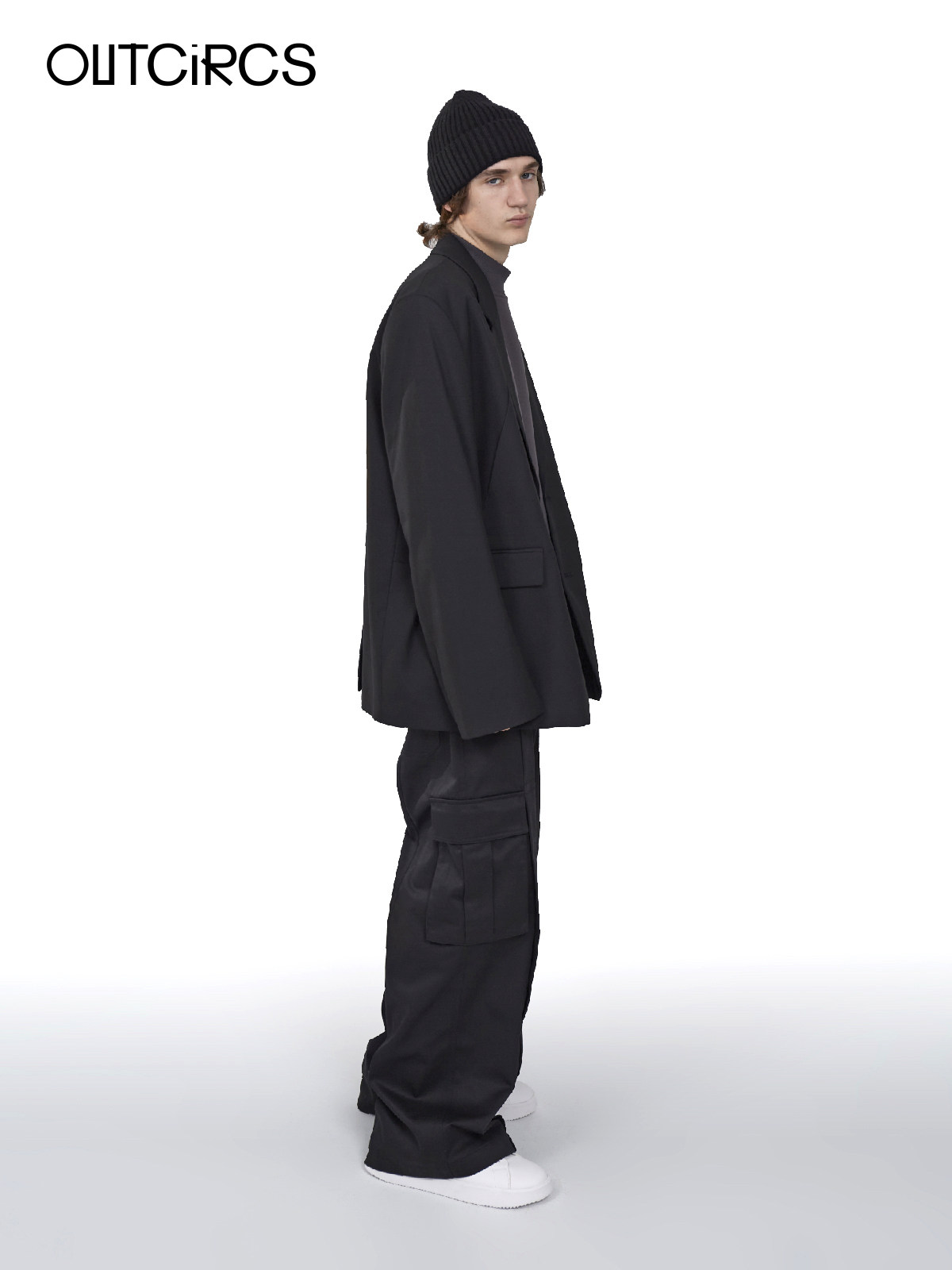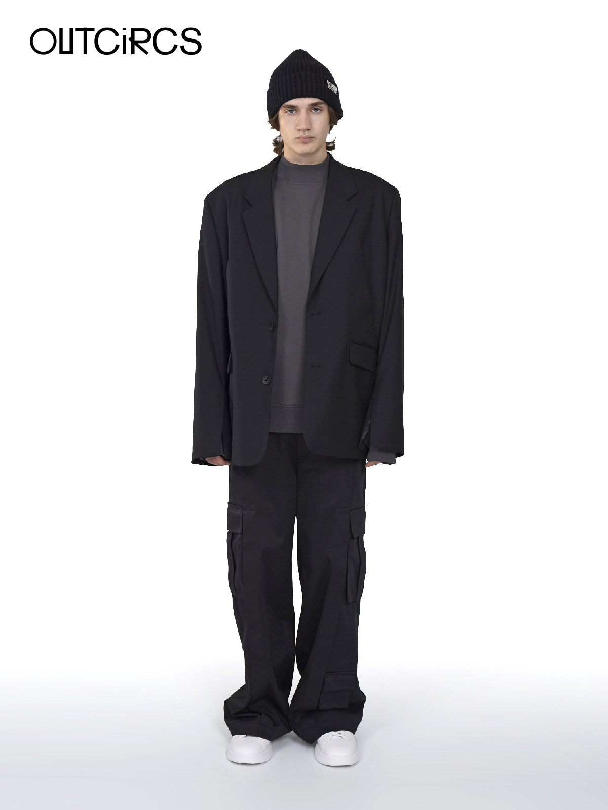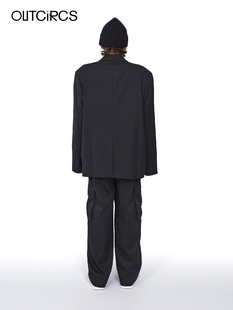 宽松垂感长裤 ArguE小众解构肌理垫肩西装 外套双层领设计西服套装