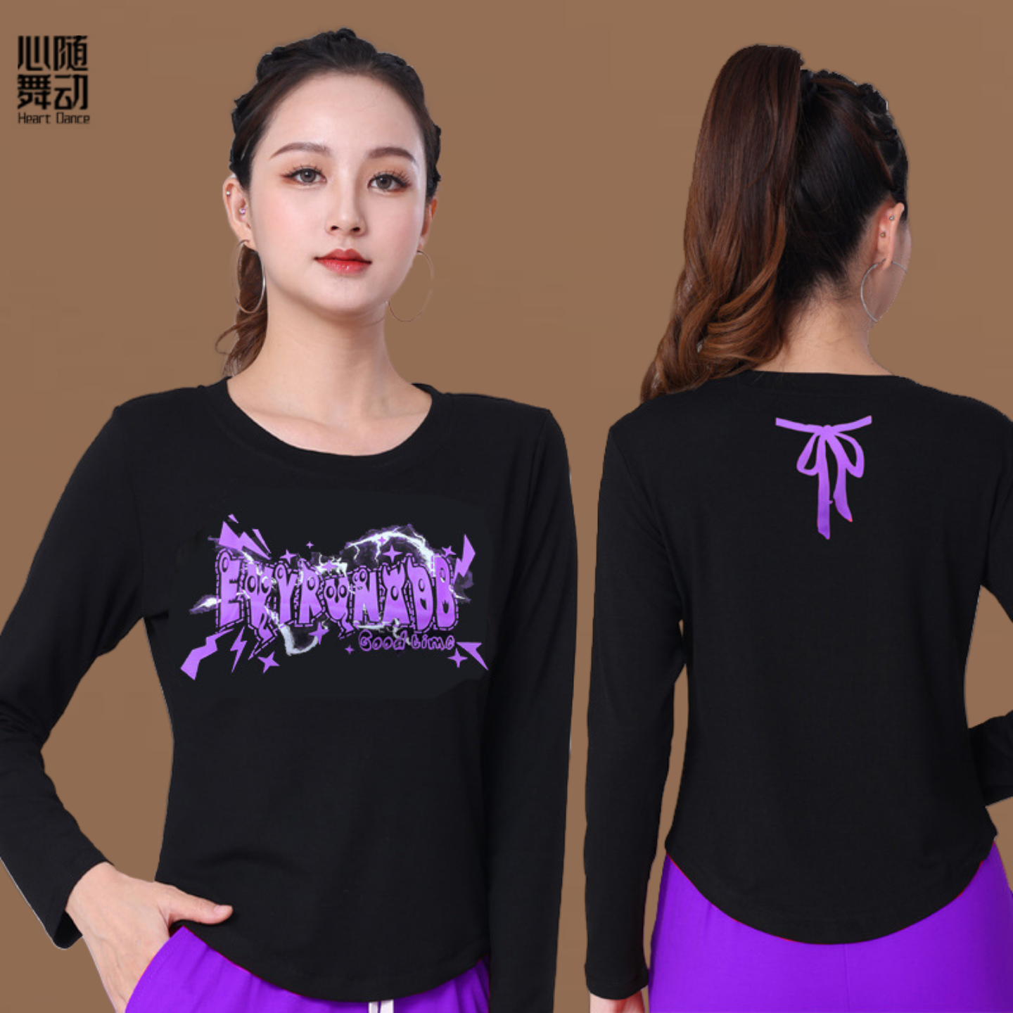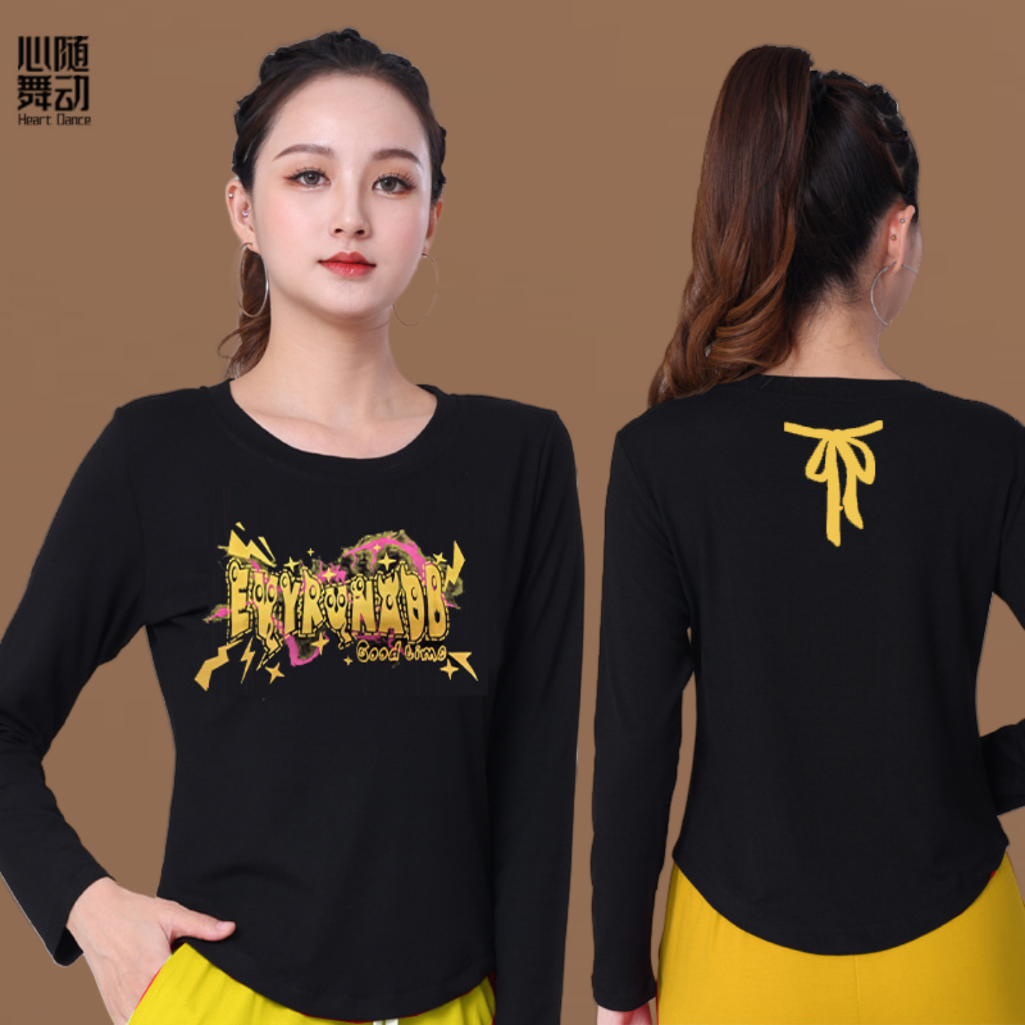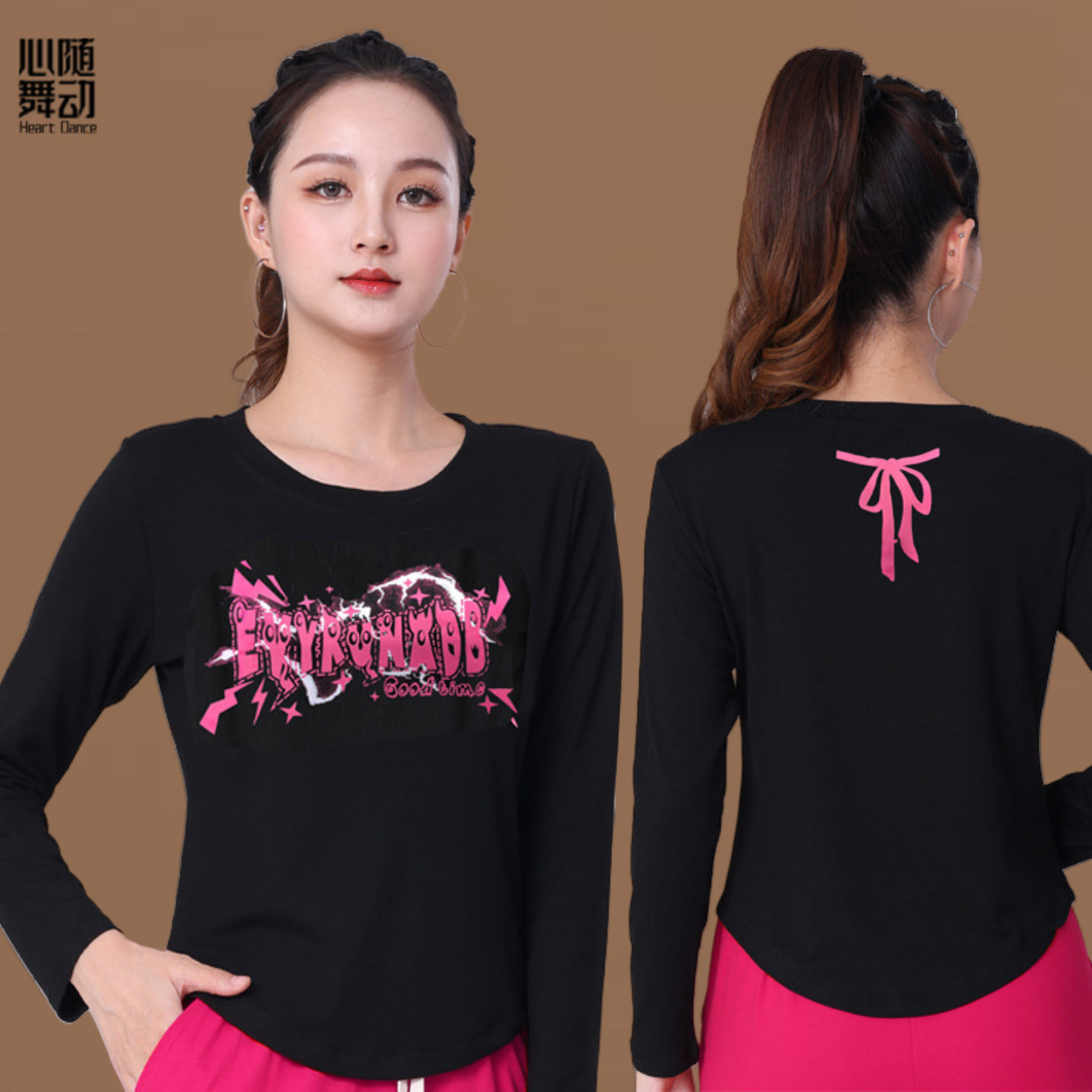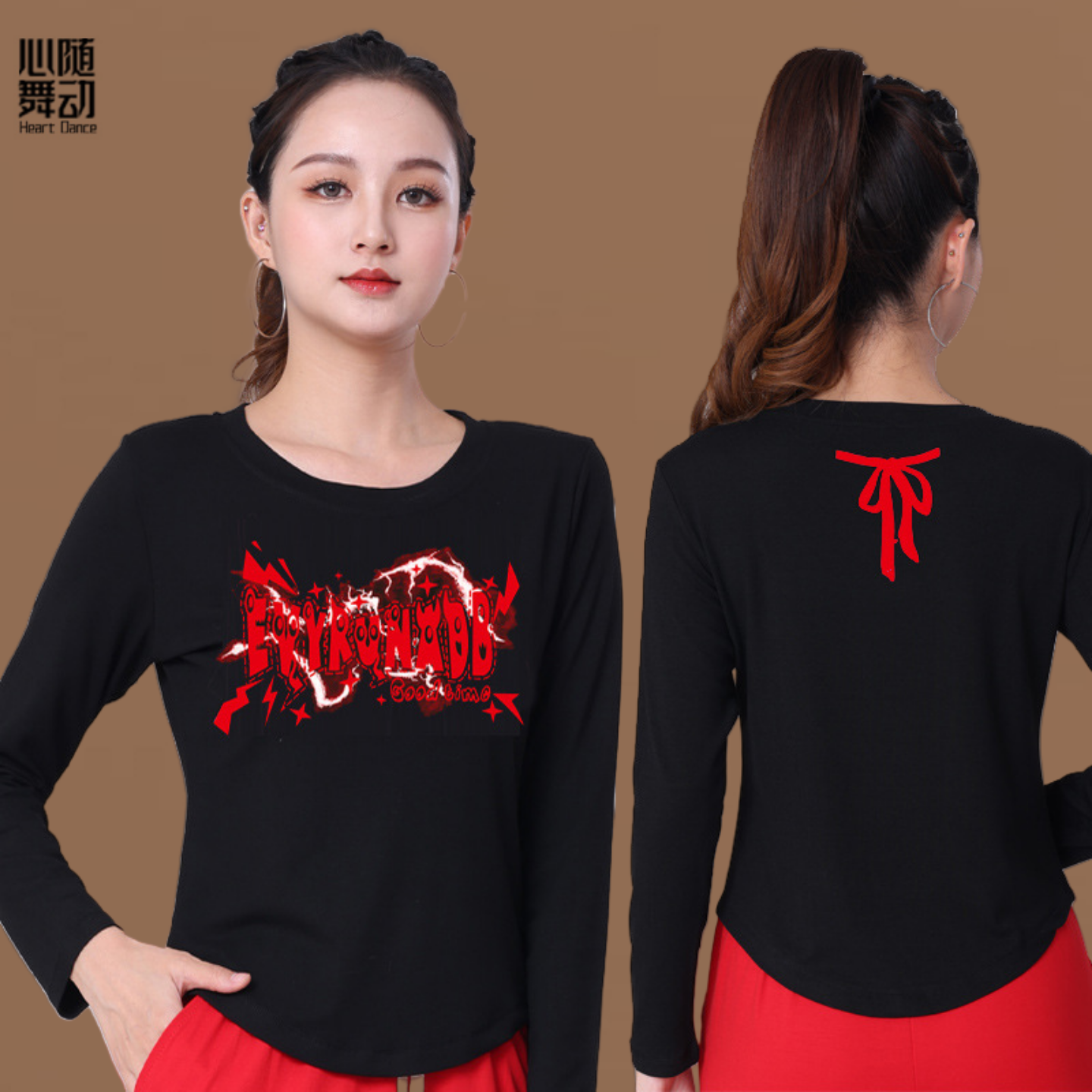 健身操T恤鬼步舞团体跳操服衣女 圆领上衣时尚 广场舞服装 春秋长袖