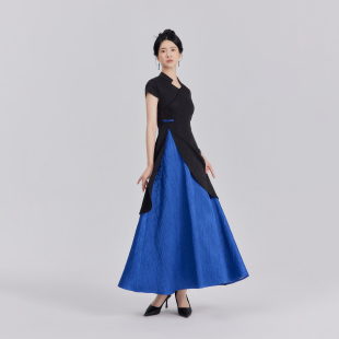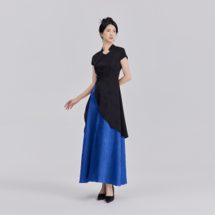 现货君君木兰织造司国风新中式 连衣裙女设计感裙子 假两件撞色短袖