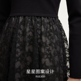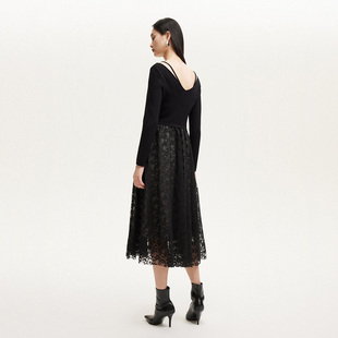 tq区绫致Vero Moda连衣裙女秋冬V领蕾丝拼接针织长裙优雅气质