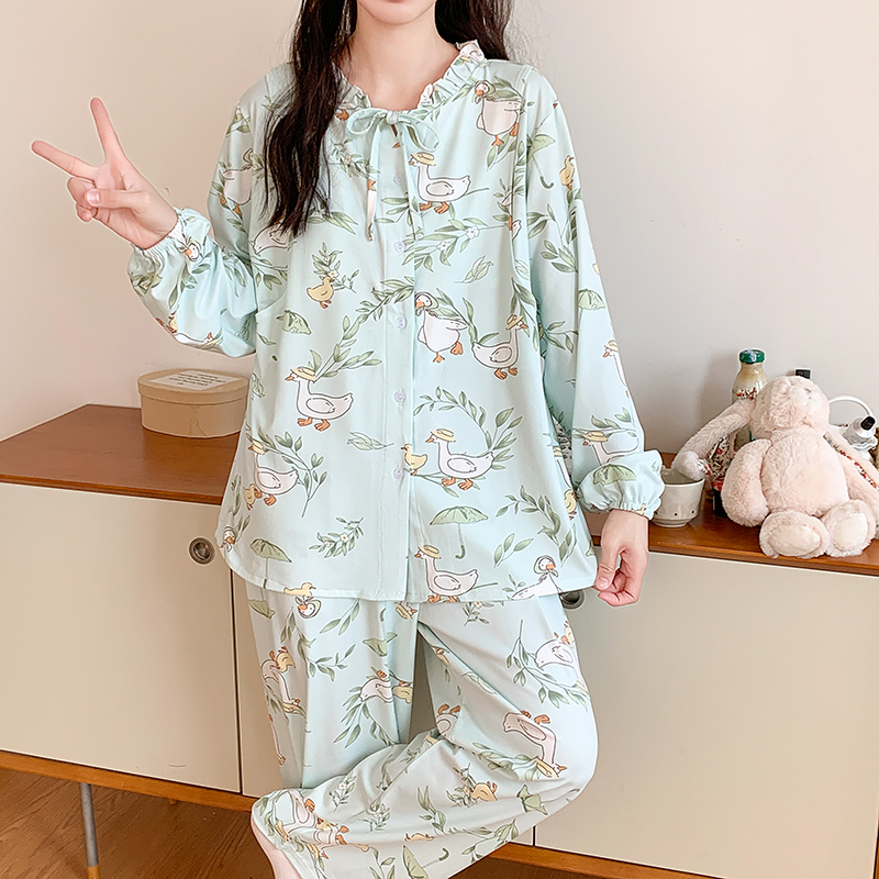 带胸垫月子服春秋纯棉7月份8产后大码 待产哺乳喂奶 孕妇睡衣秋冬款