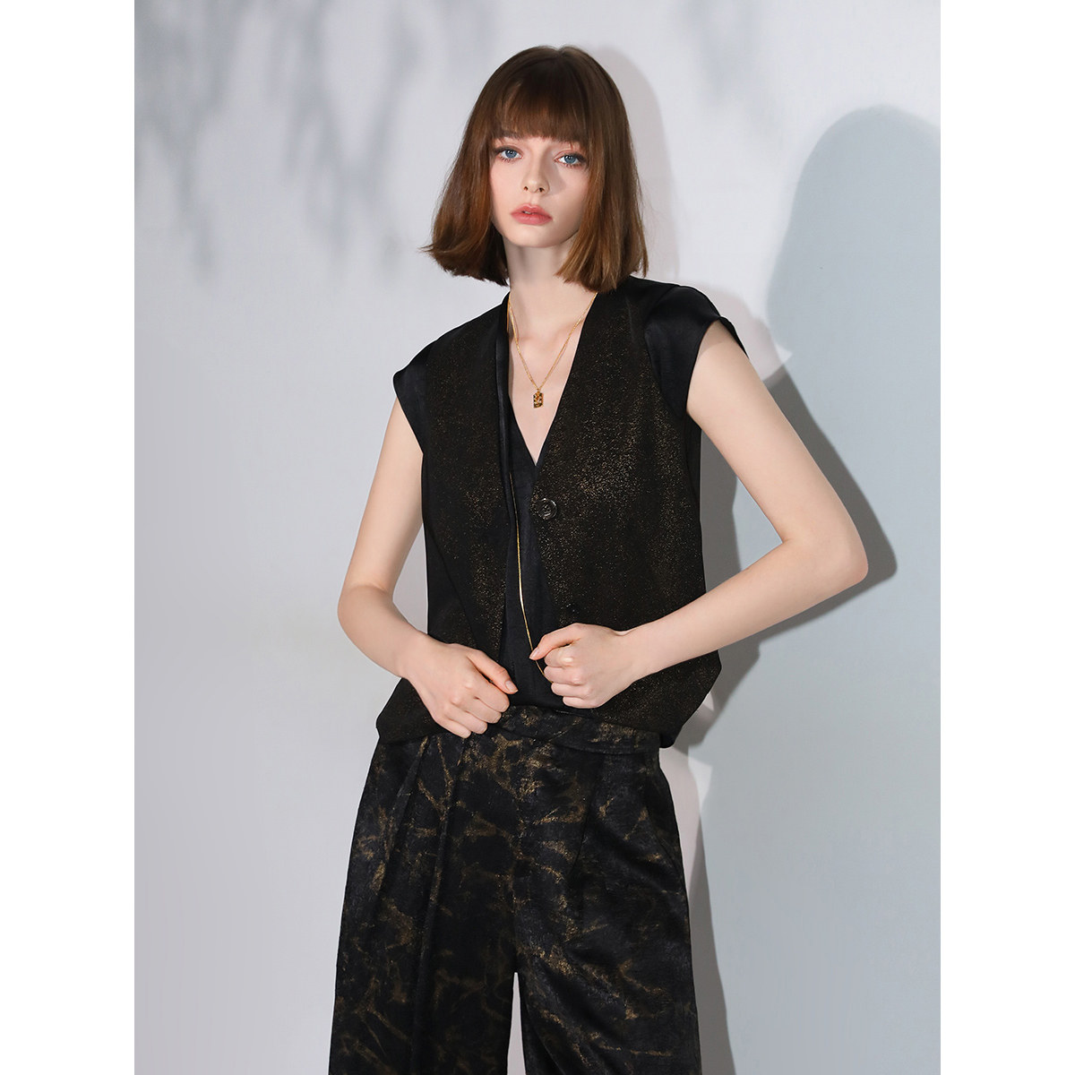 COCOBELLA设计感黑金无领西装 风马甲女春休闲气质通勤马夹WS0008