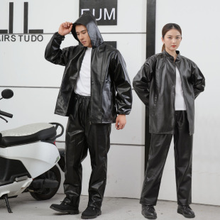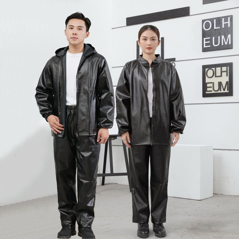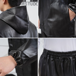 宽松防水防油工作服皮衣套装 男士 男女正阳劳保干活穿 皮裤 春秋单款