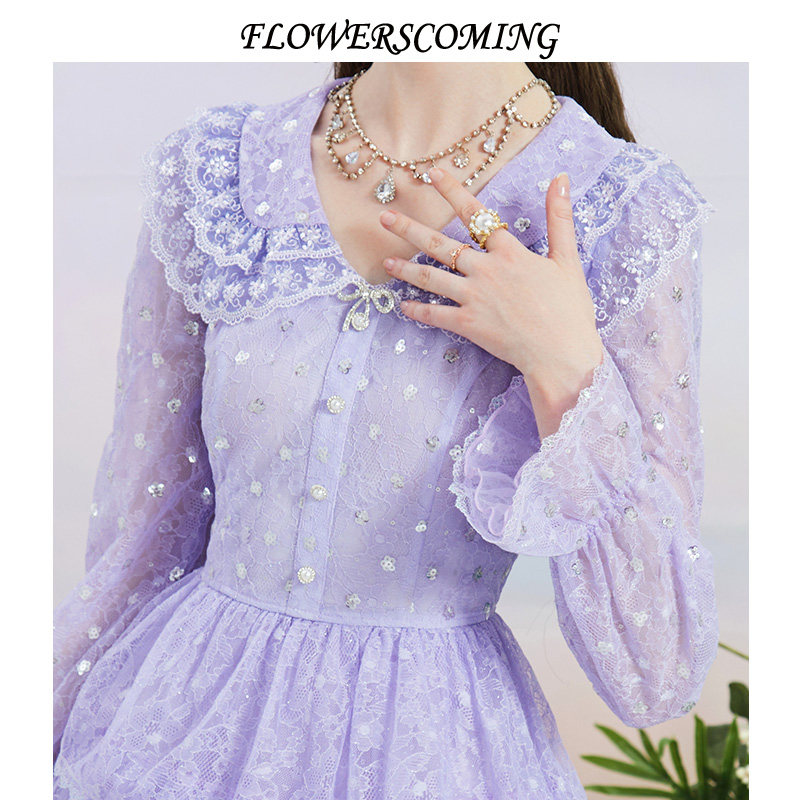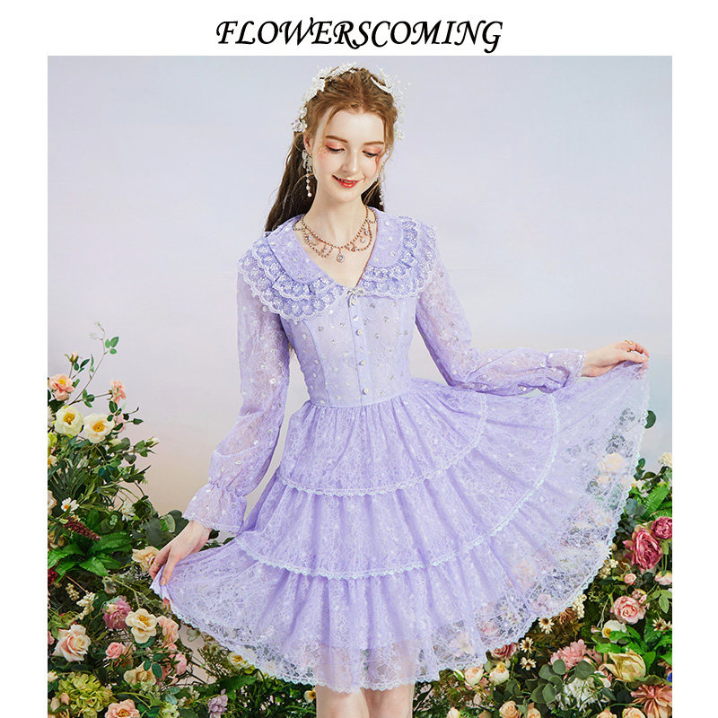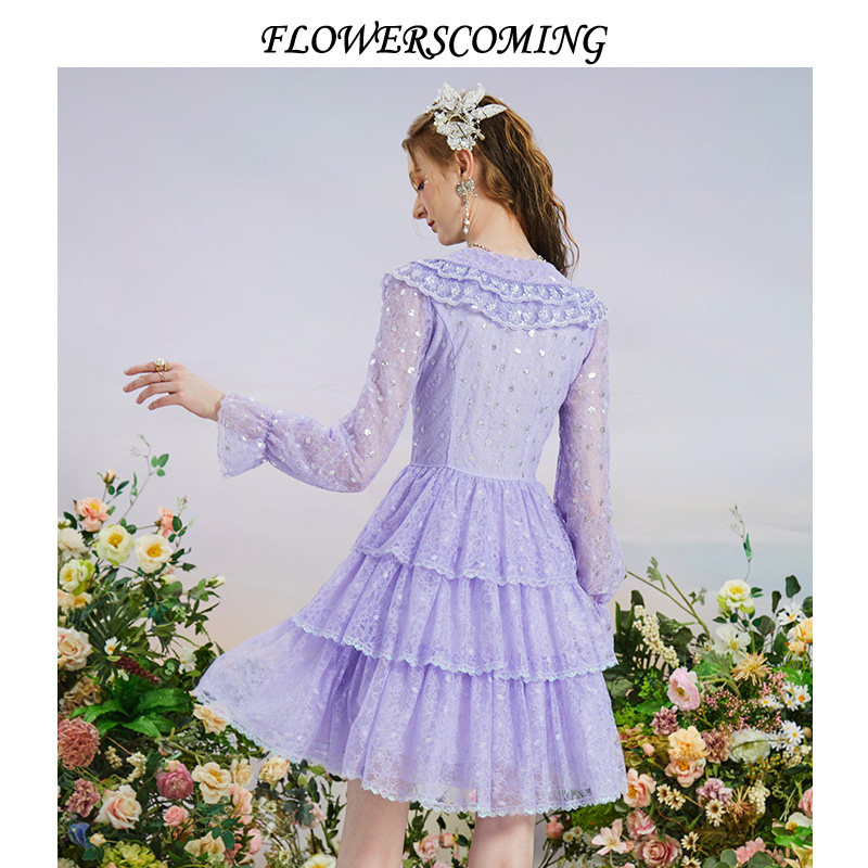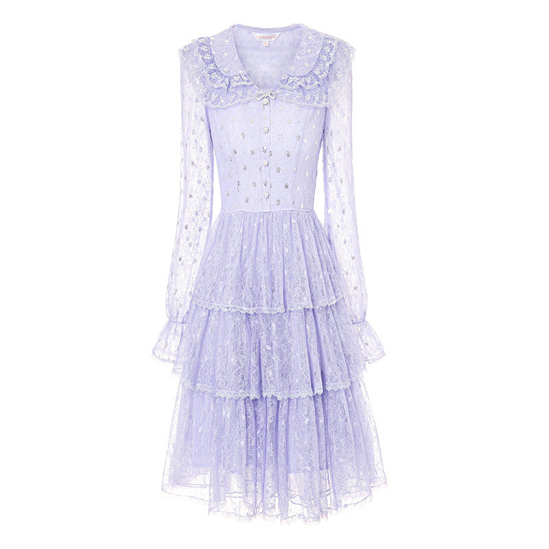 蕾丝刺绣连衣裙女娃娃领收腰显瘦蛋糕裙 法式 花儿开了2025秋季 新款