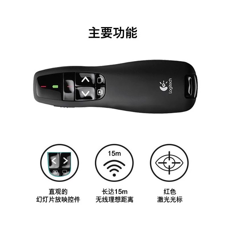 罗技R400无线翻页笔PPT教师用演示器电子教鞭多媒体遥控笔usb拆包