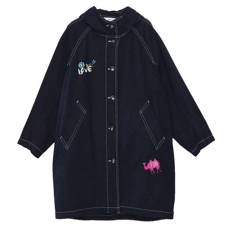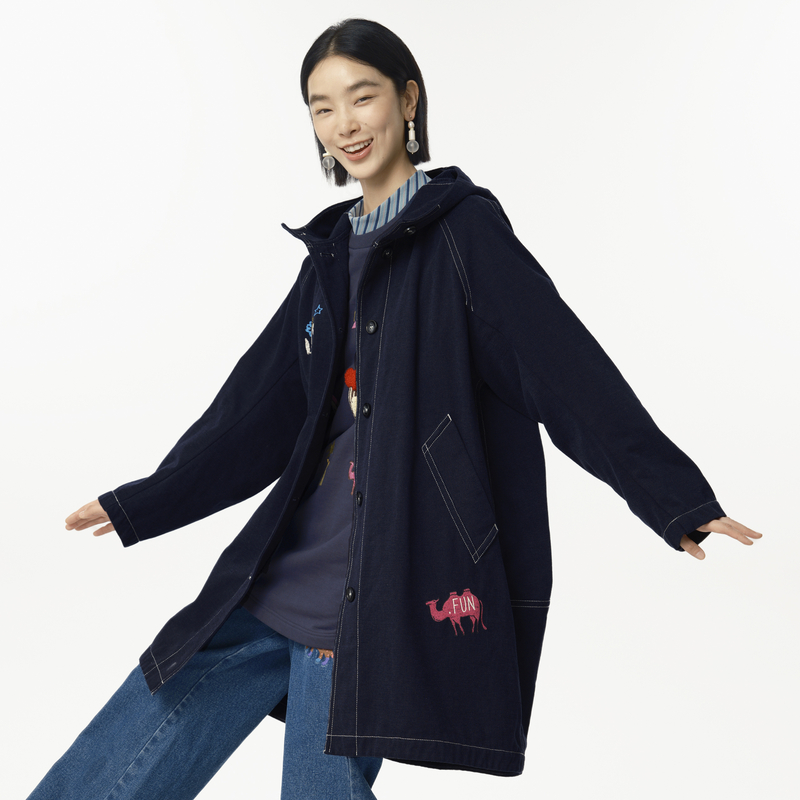 MOVEUP幻走2024冬季 .FUN系列连帽趣味绣花分割设计牛仔外套女 新款