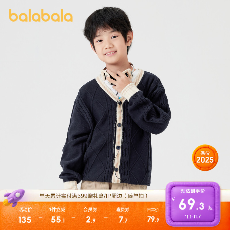 2025针织衫 毛衫 开衫 学院风毛春秋新款 百搭上衣 春秋季 巴拉巴拉童装