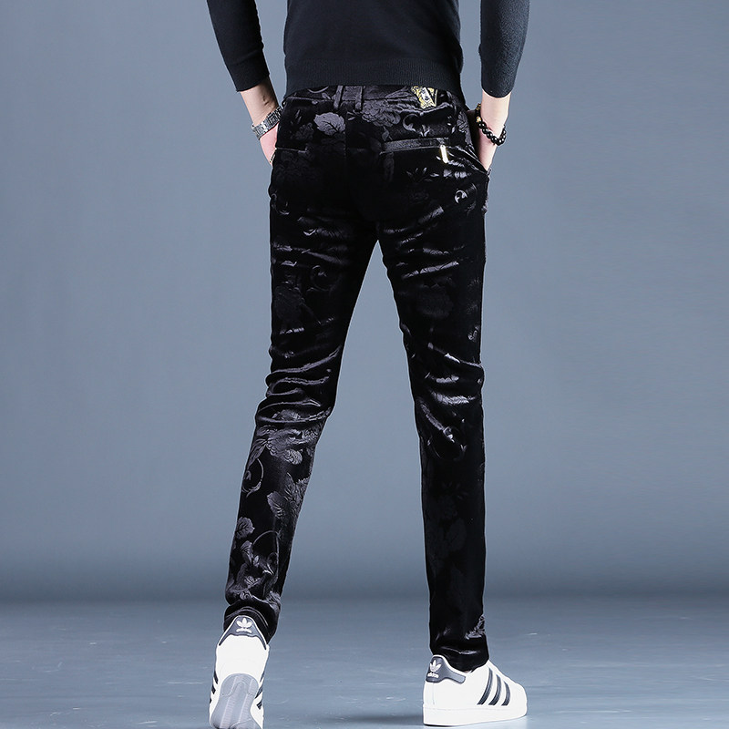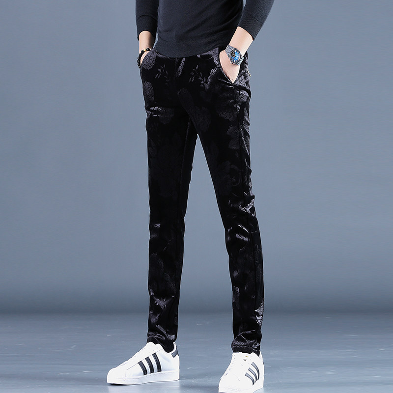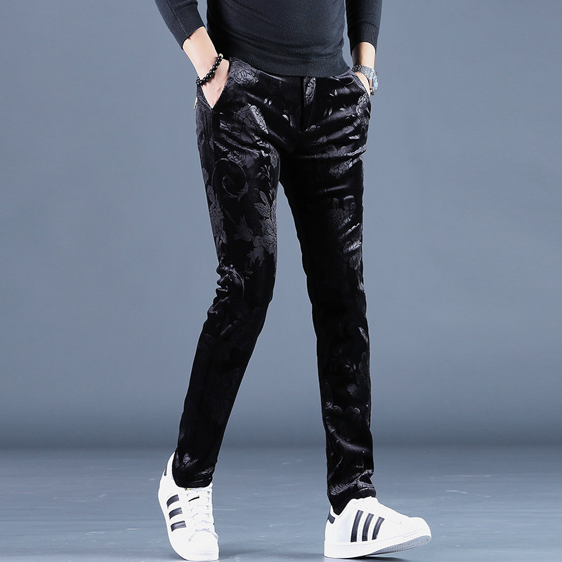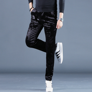 潮流英伦修身 免烫西裤 休闲裤 印花金丝绒男士 子 潮牌秋冬季 花裤 男款