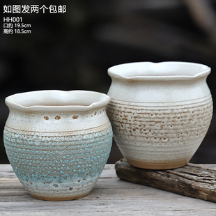 无孔水培器皿流水花瓶摆件复古中式 饰花盆室内粗陶罐插花器特高 装