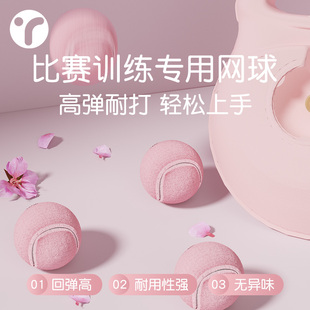网球带绳训练器底座单人打回弹高弹耐打比赛用球初学者粉色网球