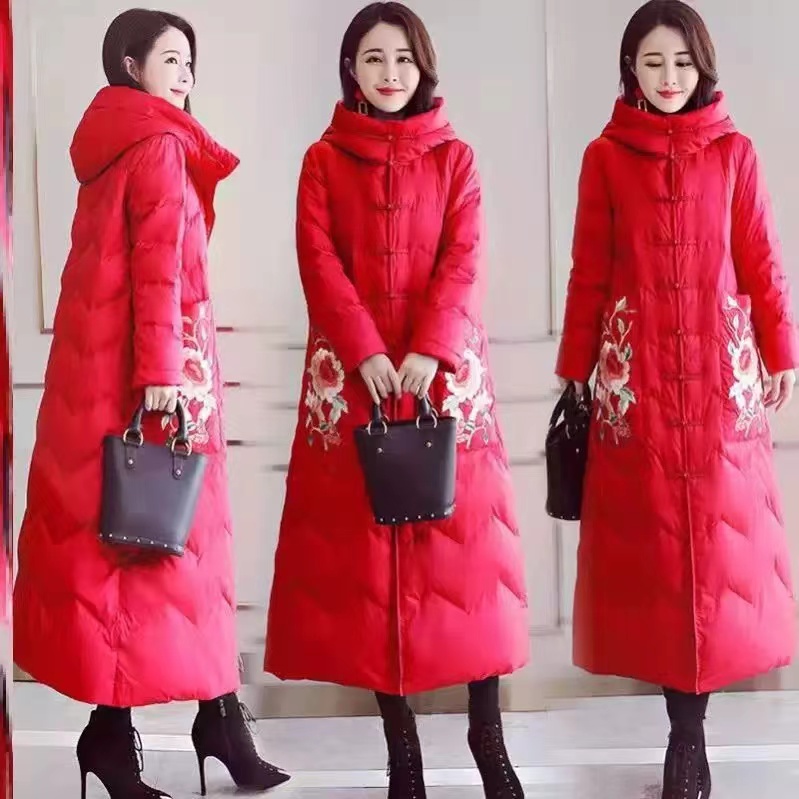 风棉衣加厚冬装 刺绣过膝棉袄中式 2024新款 中国风羽绒棉服女中长款