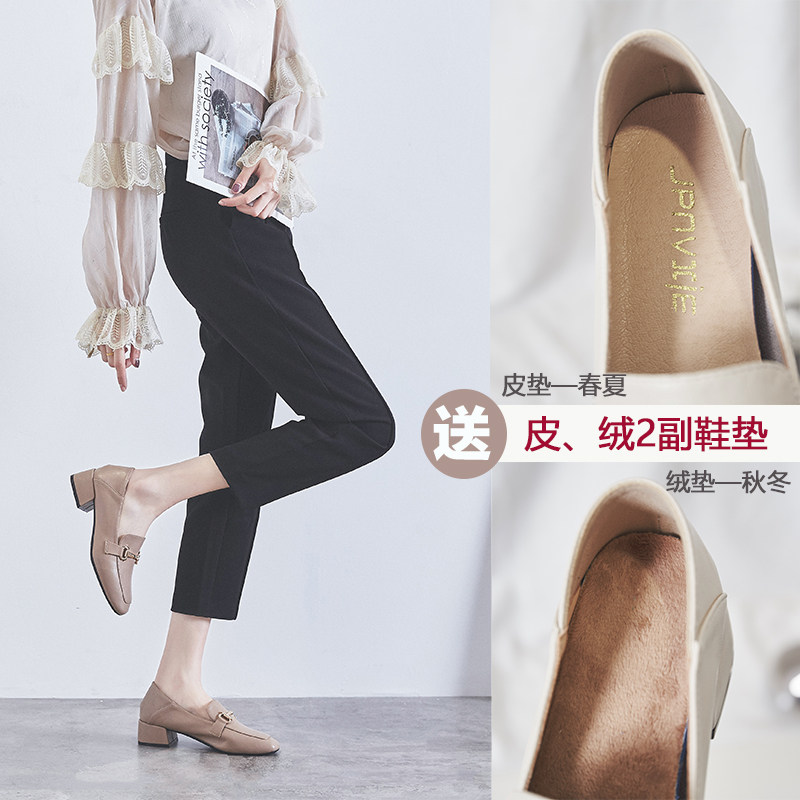 两穿潮 金属扣英伦复古柔软舒适豆豆鞋 粗跟中跟单鞋 女2026春秋新款