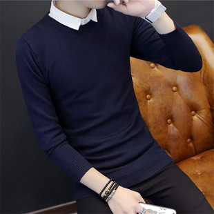 领带领打底针织衫 加绒加厚毛衣男冬季 假两件内搭衬衫 韩版 2025新款