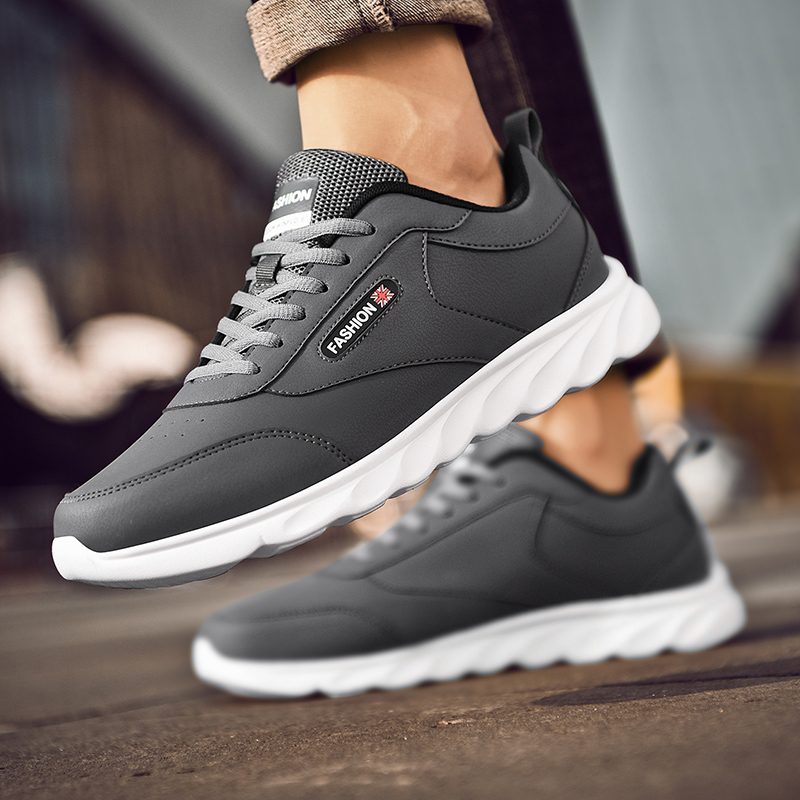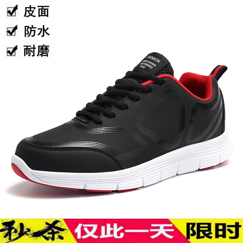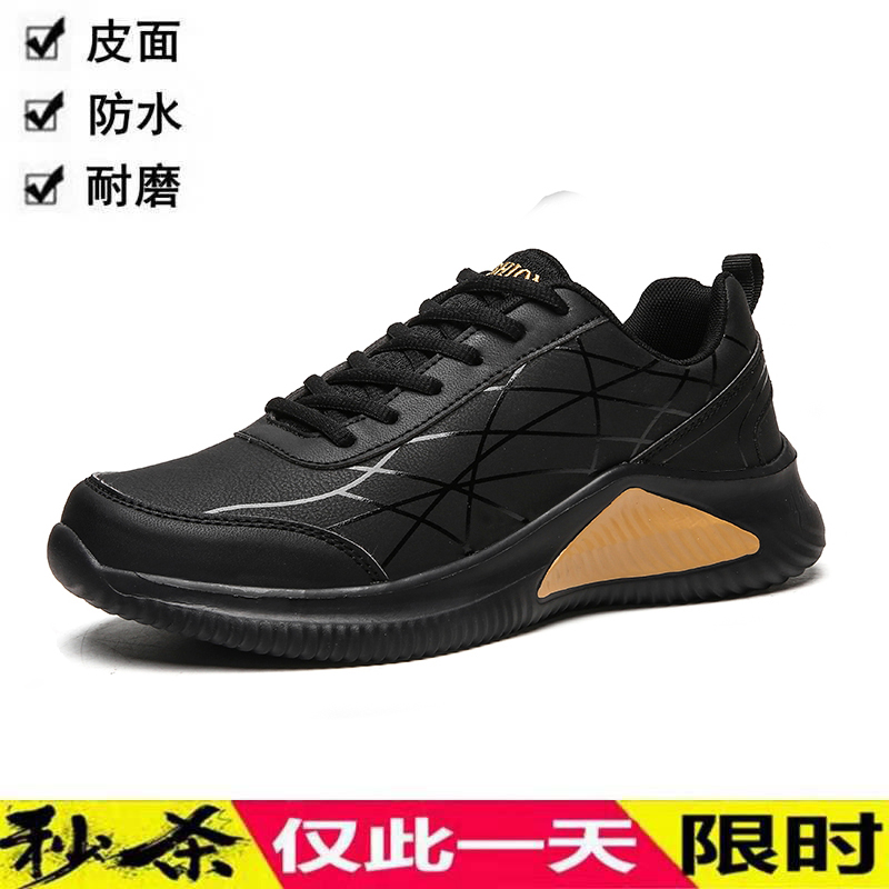 皮面防水运动鞋 2024新款 黑色男士 工作鞋 特价 防滑跑步旅游鞋 男鞋