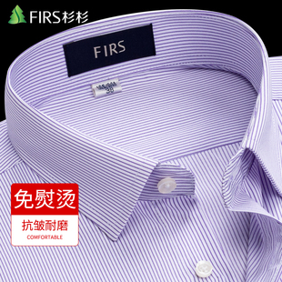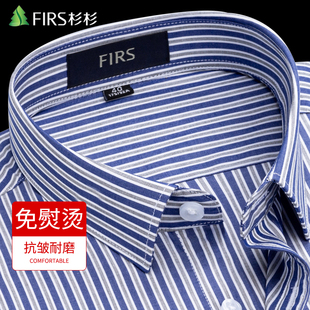新款 长袖 休闲商务免烫衬衣中年正装 条纹衬衫 男士 杉杉2025年春秋季