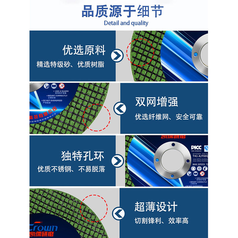 凯儒切割片角磨机砂轮片切铁锯片金属不锈钢磨光机专用107切割片