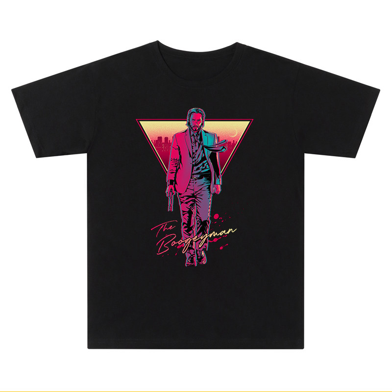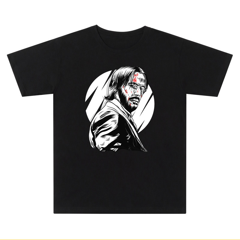 T恤欧美疾速追杀3基努里维斯趣味印花圆领男女情侣装 2020新款 短袖