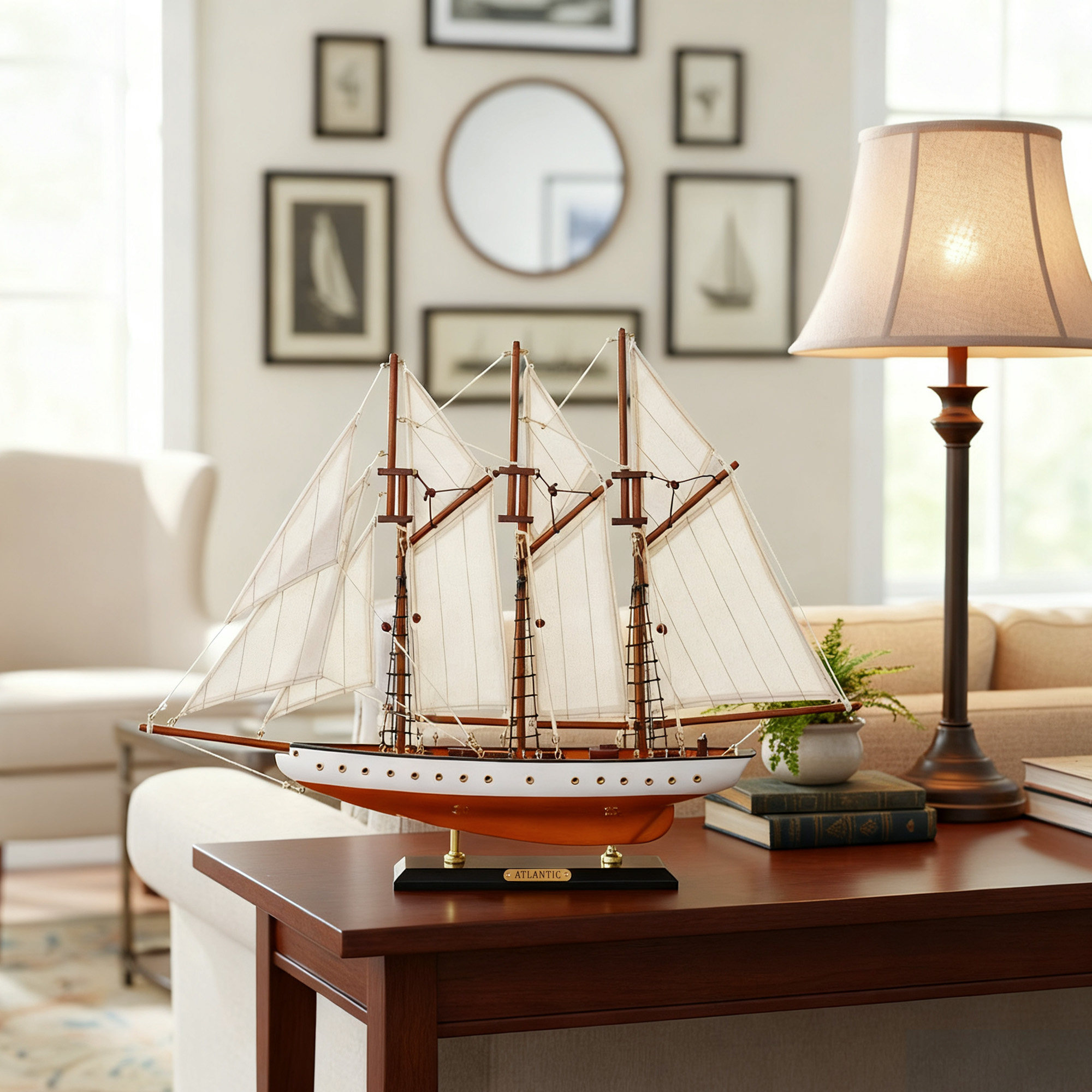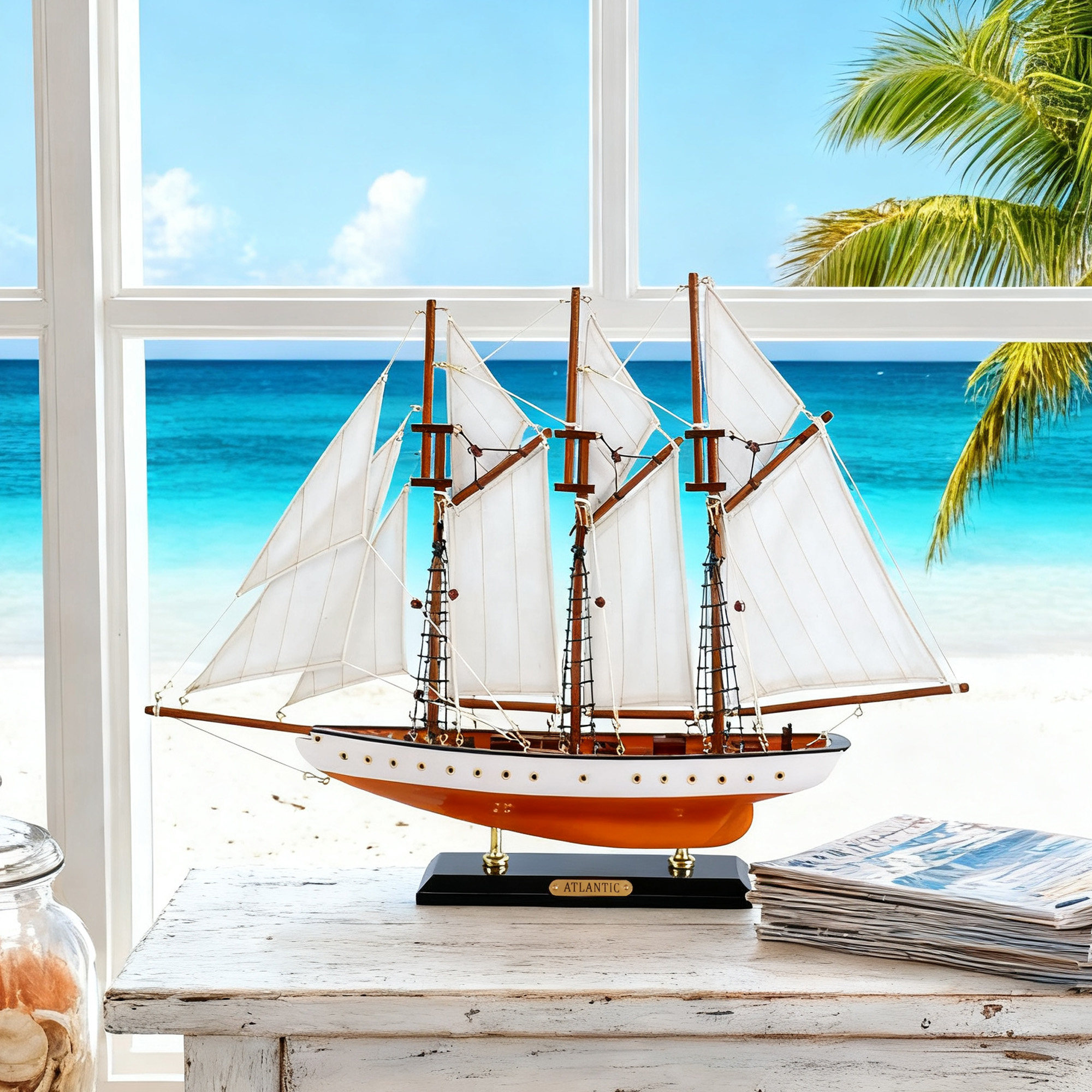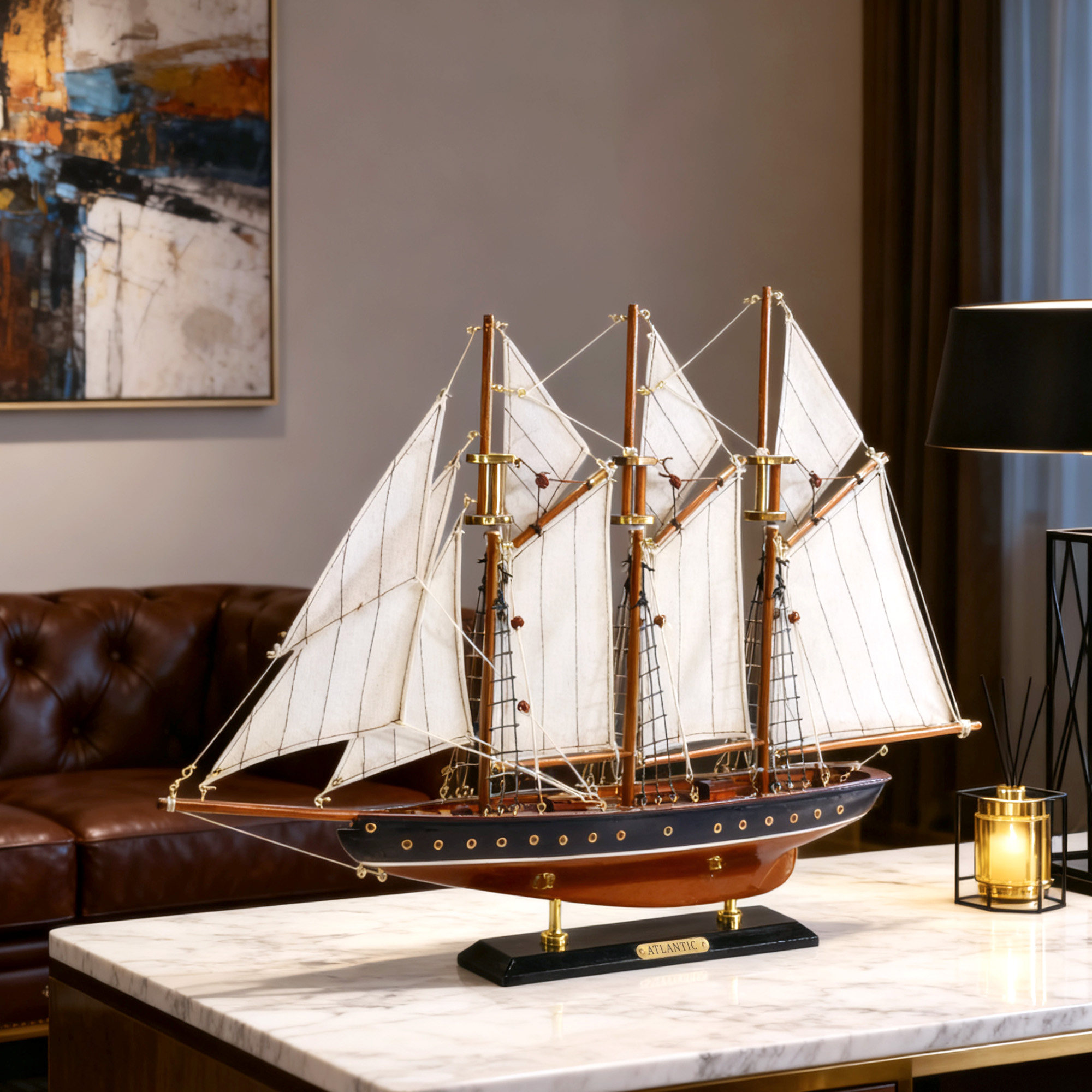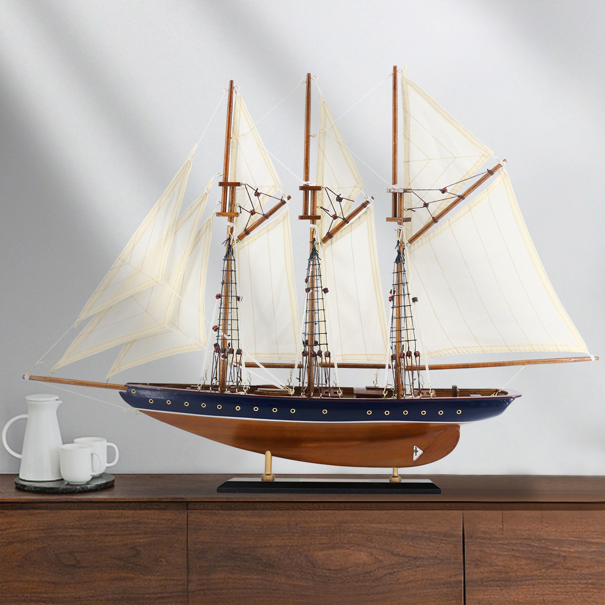 大西洋号复古地中海风格 饰摆件年会奖品 实木质帆船模型家居客厅装