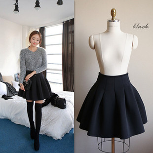 2025秋冬韩版 高腰显瘦打底短裙女半身裙百褶裙黑色太空棉蓬蓬裙