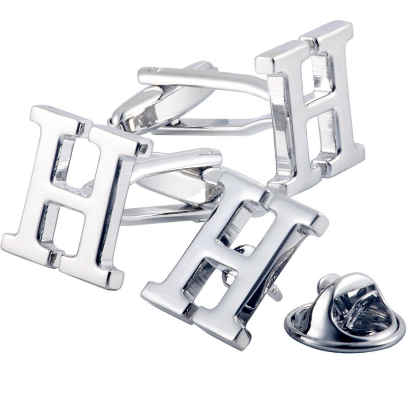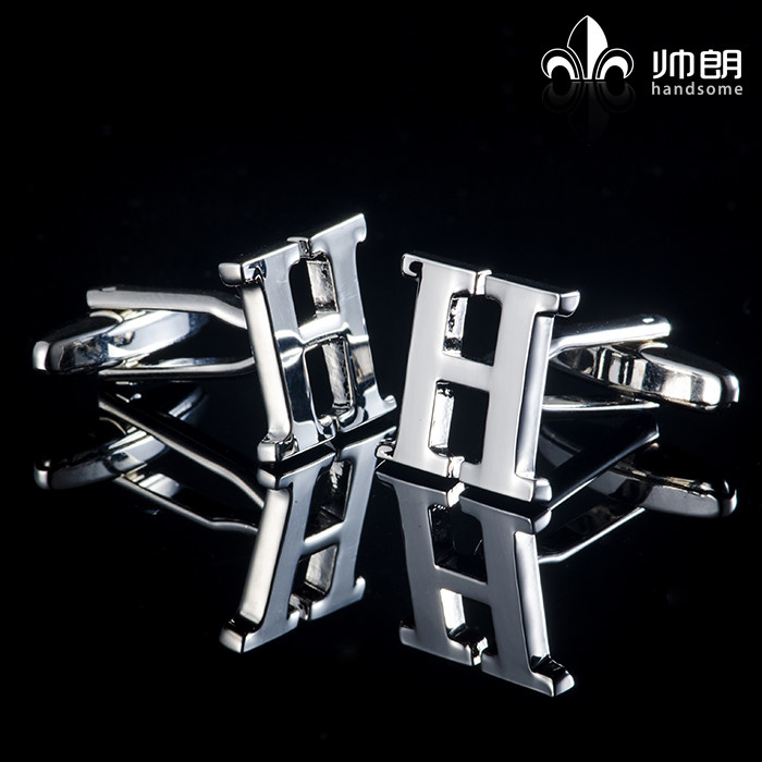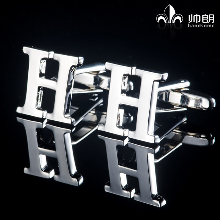 袖 英文字母袖 衬衫 钉新郎礼物法式 口扣一对可选不同 扣纯金属银色袖