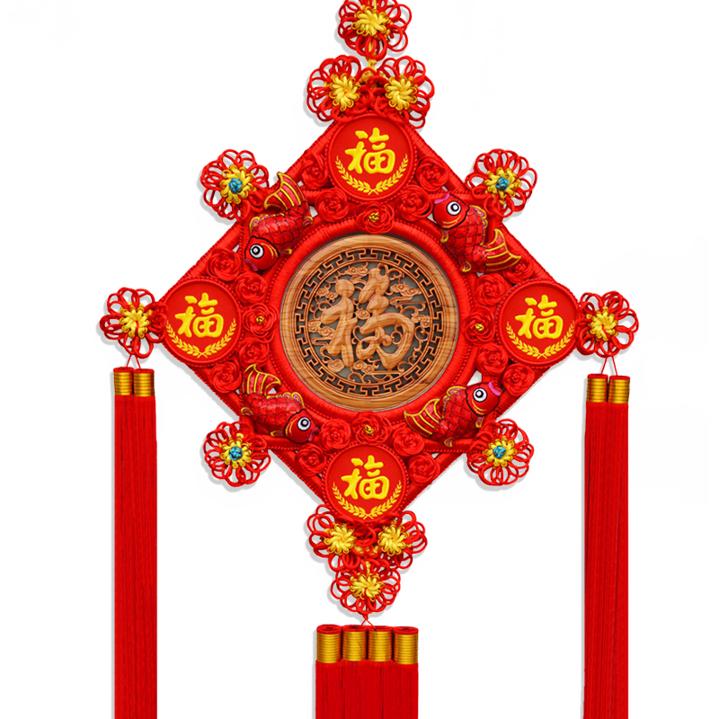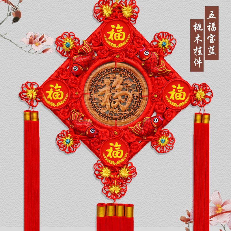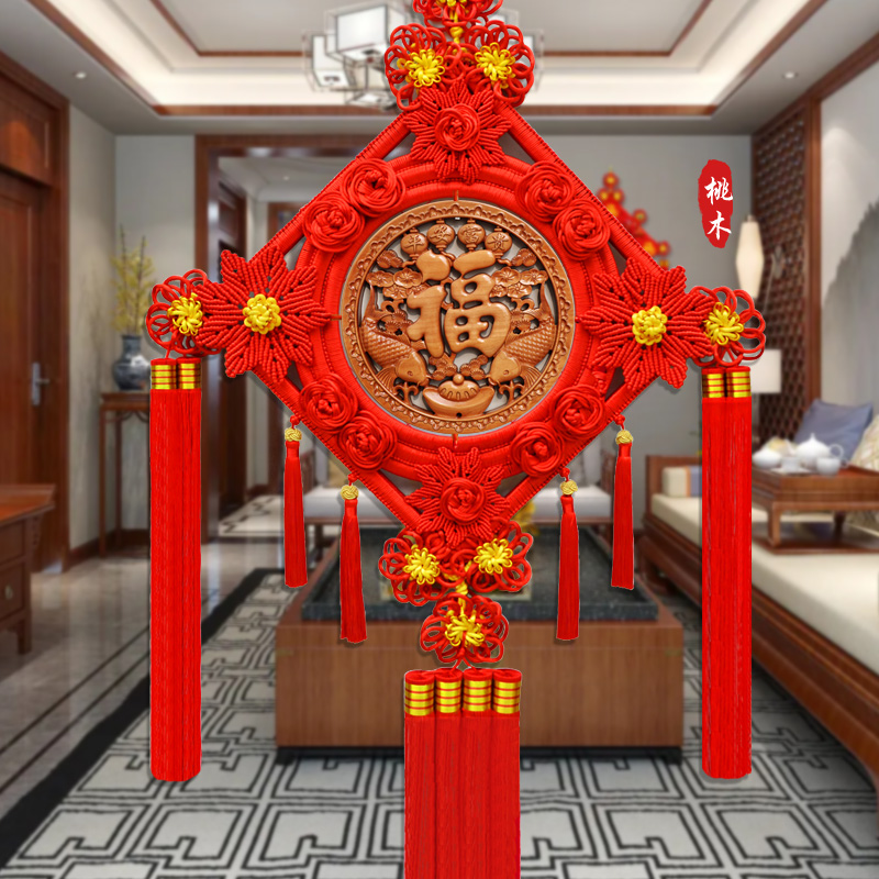 中缘结中国结桃木客厅大号福字挂件家居乔迁玄关壁挂装 饰喜庆礼品