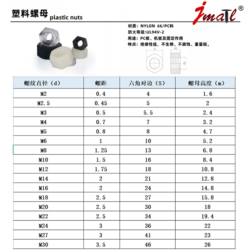 PA66玻纤六角塑料绝缘尼龙增强螺母M2 M30塑胶PC透明螺母黑色螺帽